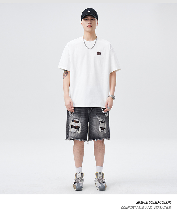 250g夏季凉感舒适短袖t恤男新款宽松大码美式复古大码男士体恤衫