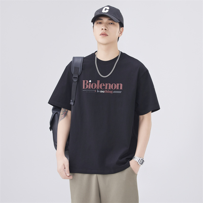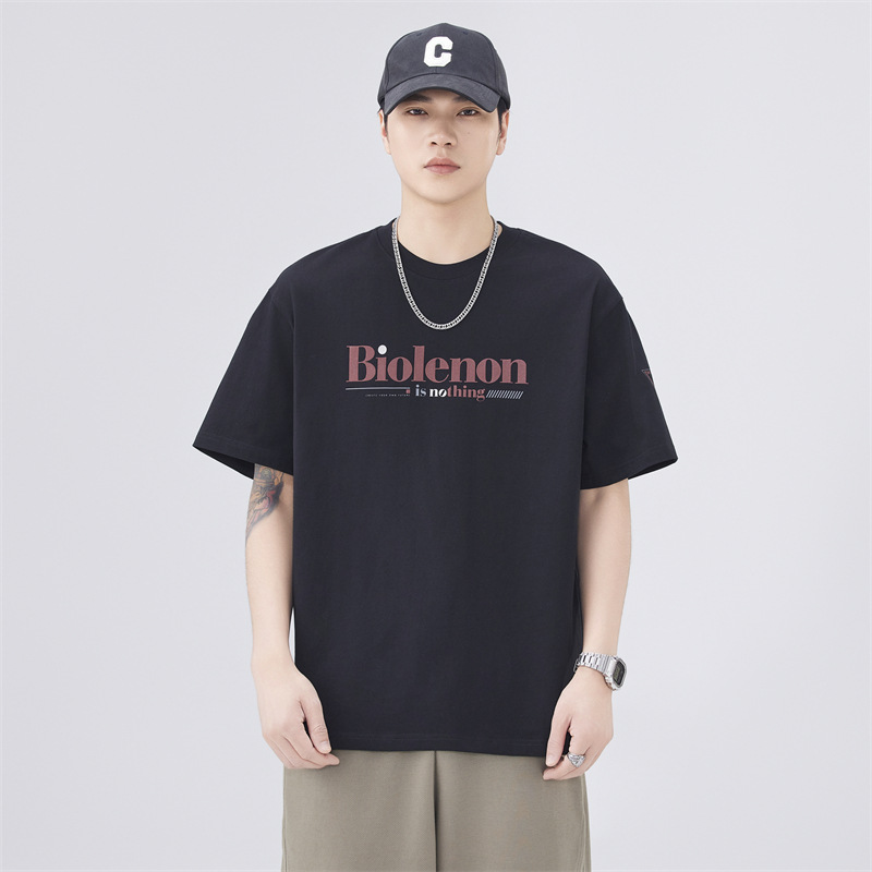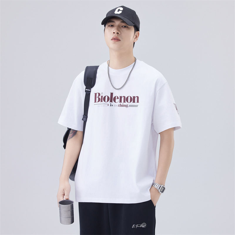 2025夏季印花字母短袖t恤男士纯棉美式复古圆领宽松男装半袖体恤