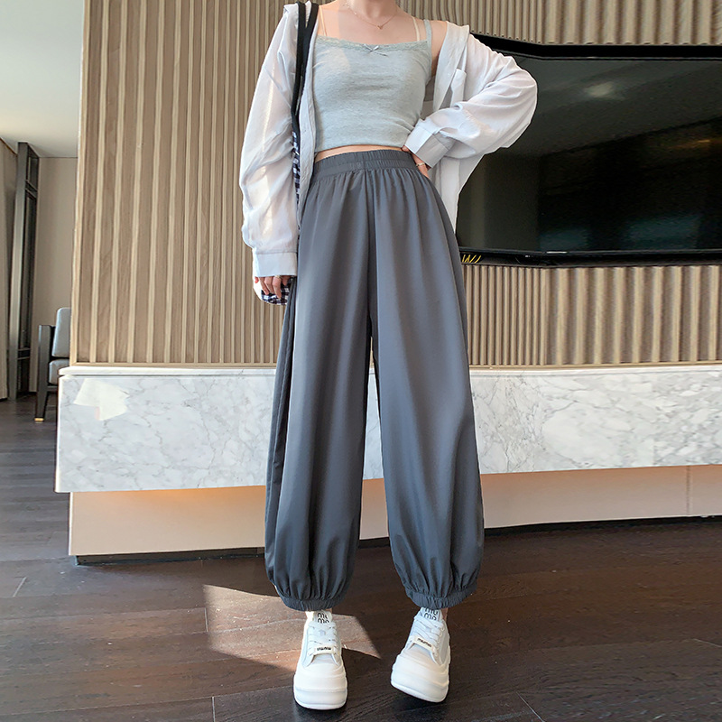 缎面冰丝灯笼裤女夏季女装新款高腰直筒哈伦裤显瘦凉凉卫裤