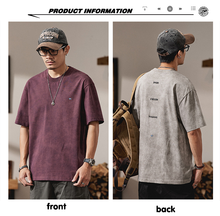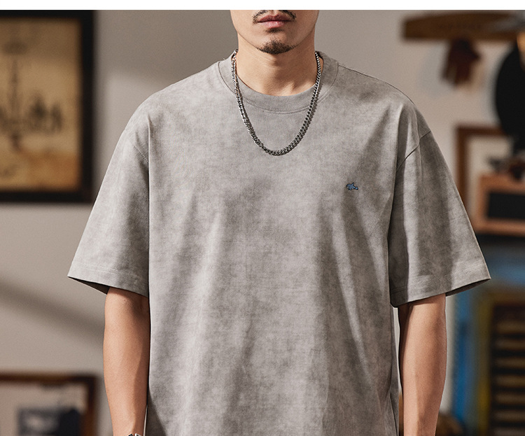 美式发泡印花230g短袖t恤男夏季宽松潮牌复古上衣男士大码圆领T恤