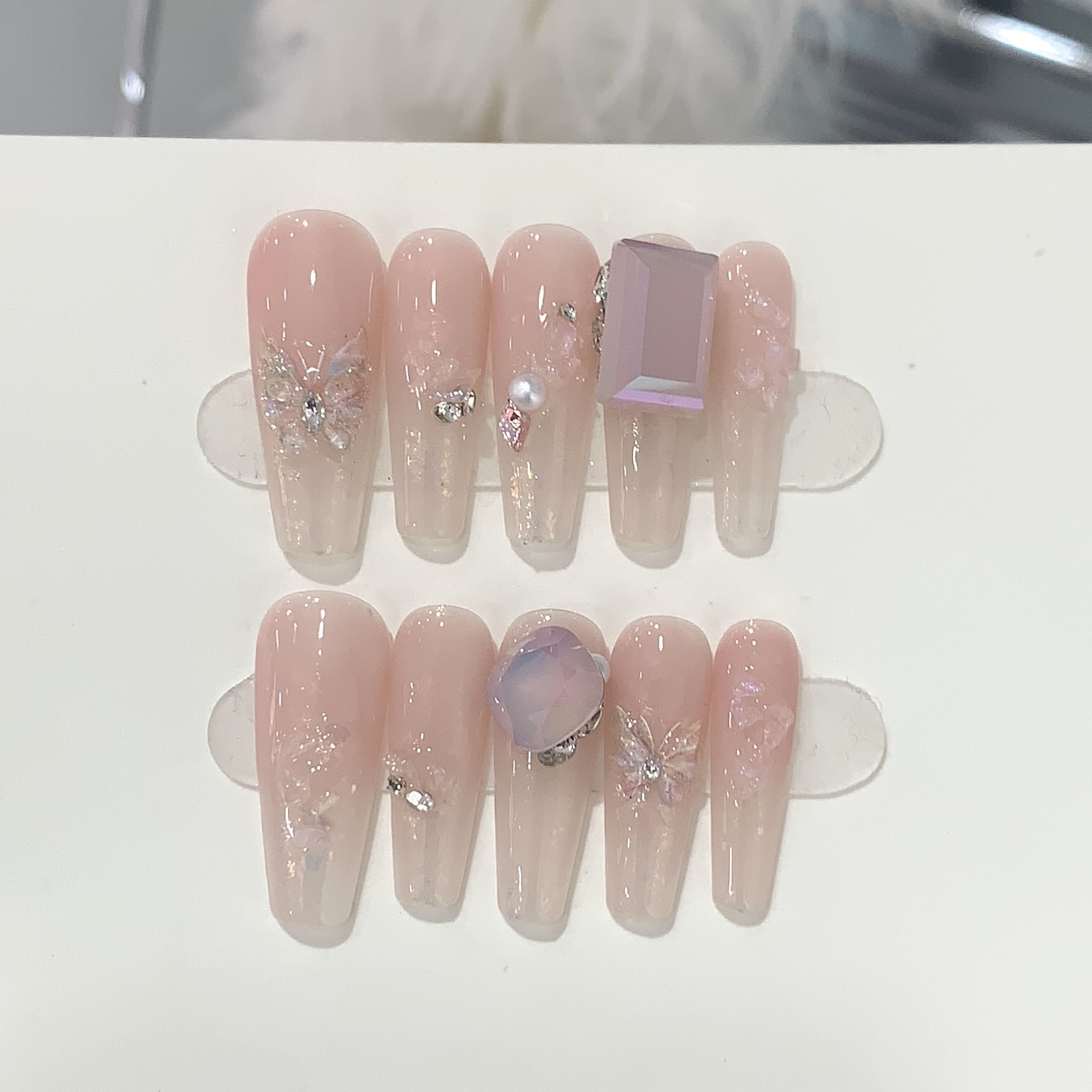 一只顾美甲厂【Y】【原创实拍】纯欲少女感立体浮雕蝴蝶碎石奢梦