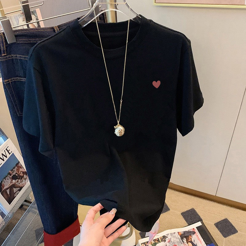2025夏季新款粉色纯棉短袖t恤女宽松百搭爱心印花休闲减龄上衣潮