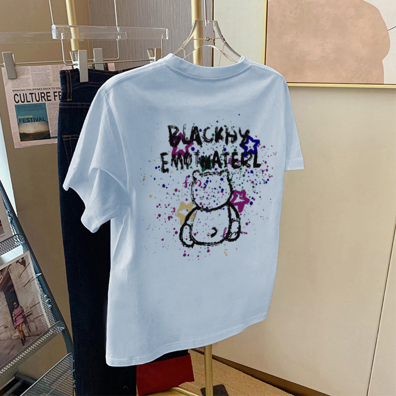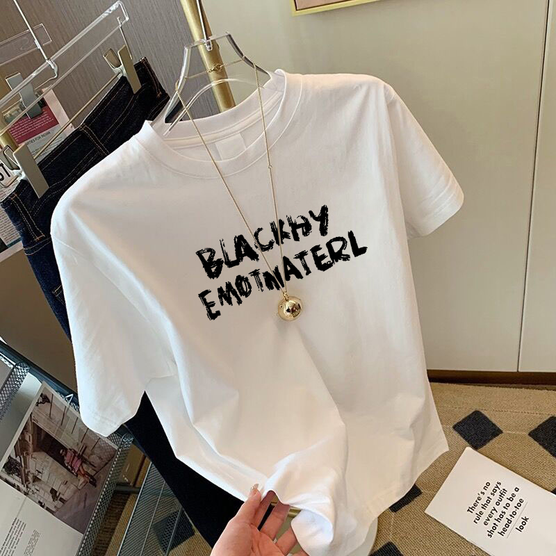 2025夏季新款纯棉白色短袖t恤女宽松百搭字母印花时尚减龄上衣潮
