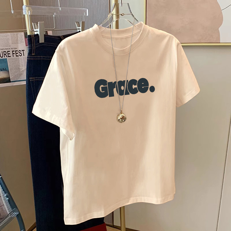 夏季新款白色纯棉短袖t恤女宽松百搭时尚洋气字母印花上衣ins
