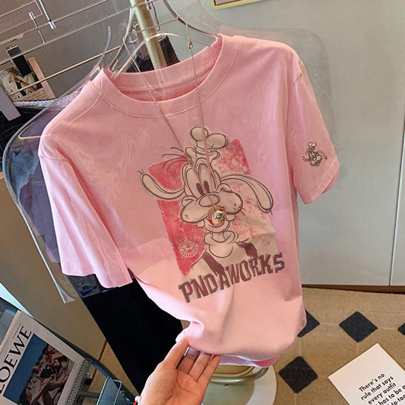 2025夏季新款设计感小众粉色纯棉短袖t恤女宽松百搭显瘦质感上衣