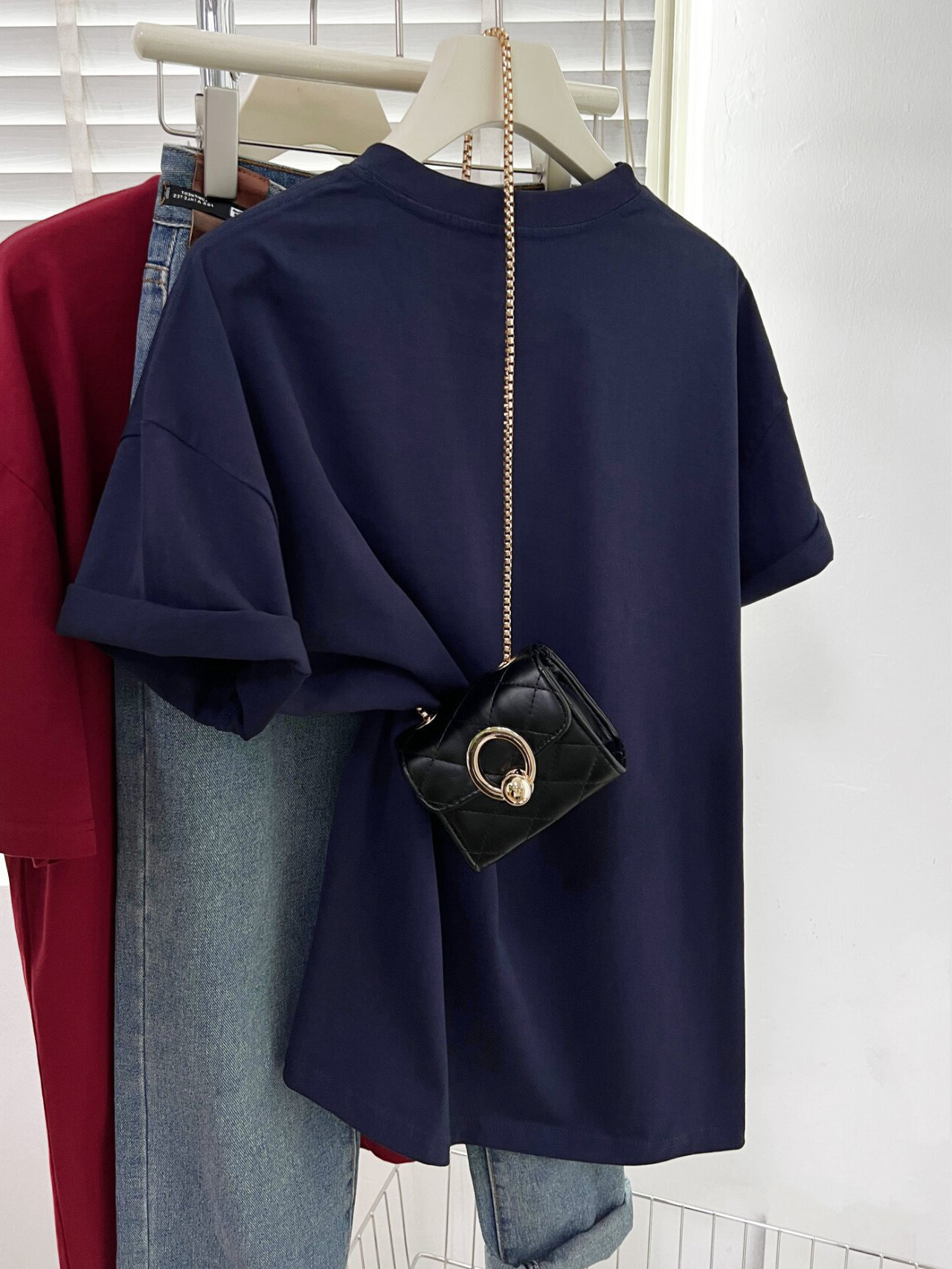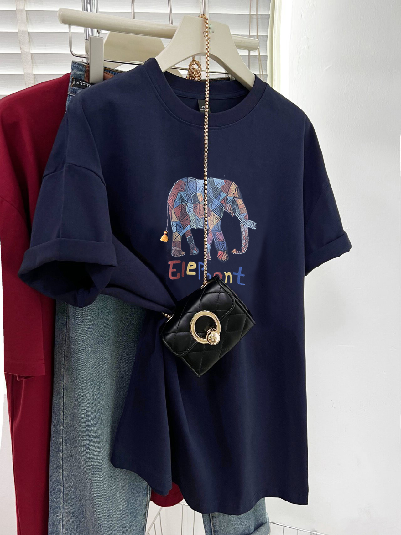 2025夏季新款藏蓝色设计感小众全棉短袖t恤女宽松百搭减龄上衣潮