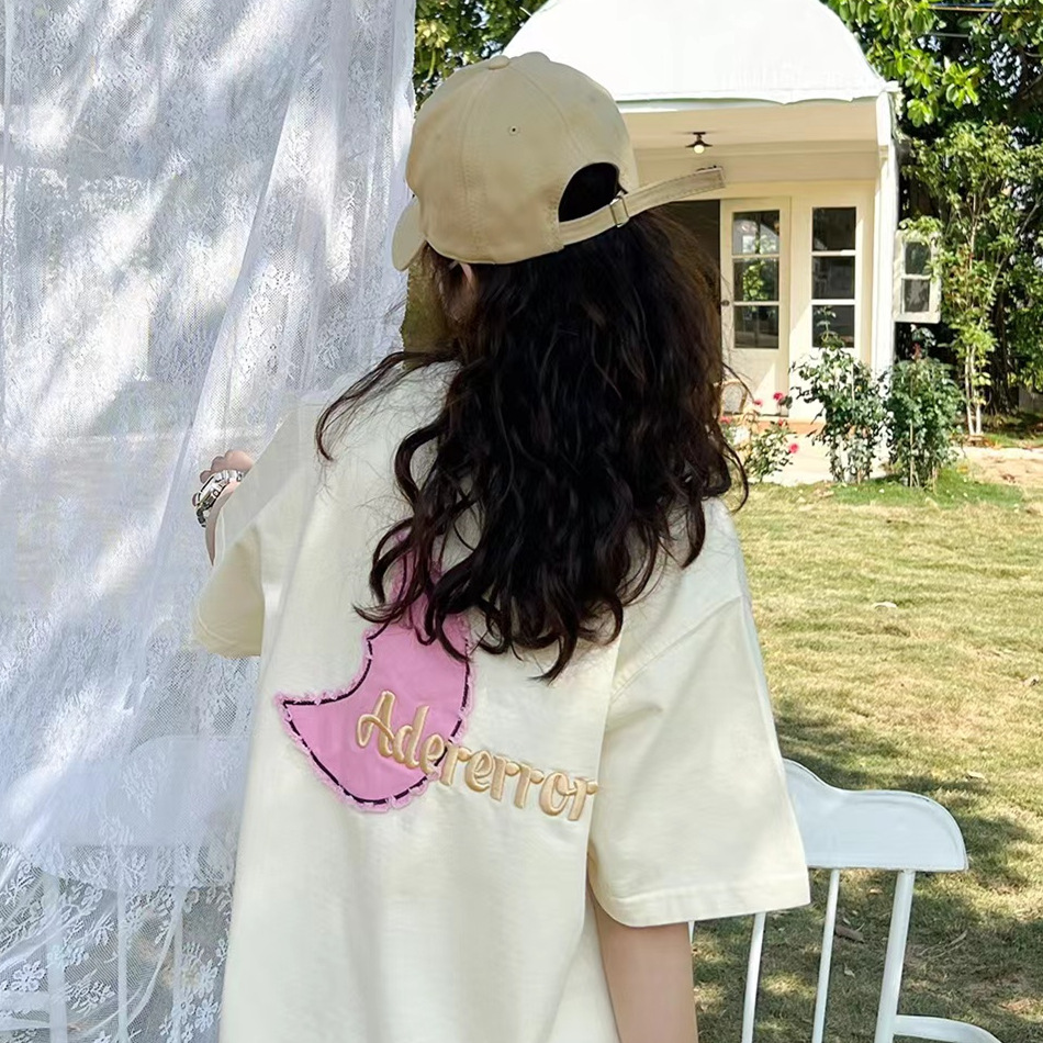 ADER刺绣月亮贴布T恤男女情侣短袖潮牌夏款宽松休闲上衣半袖