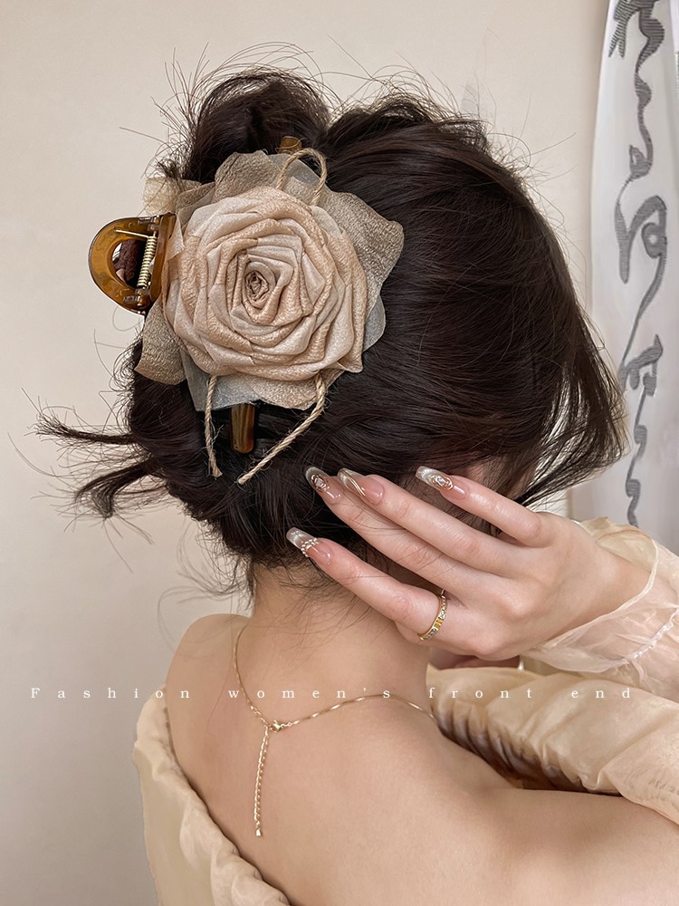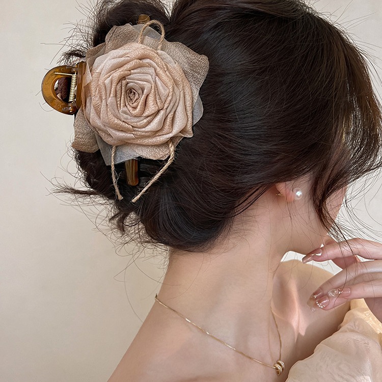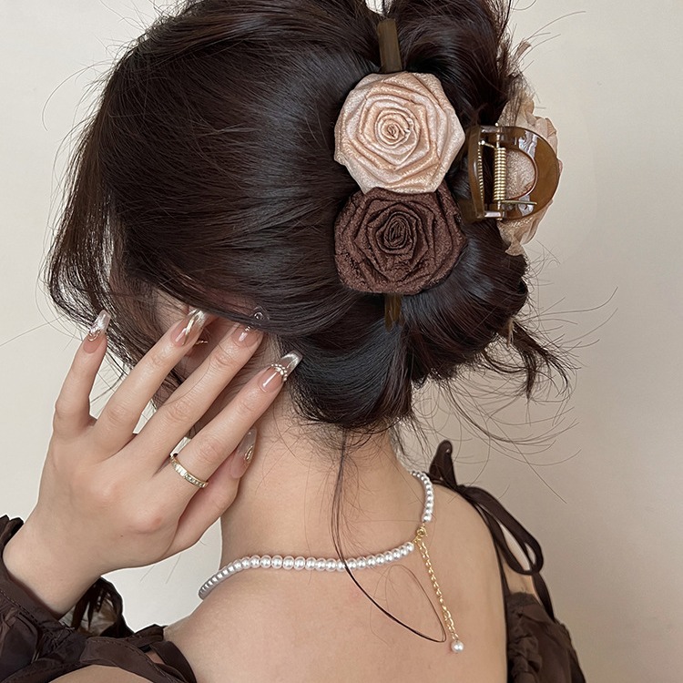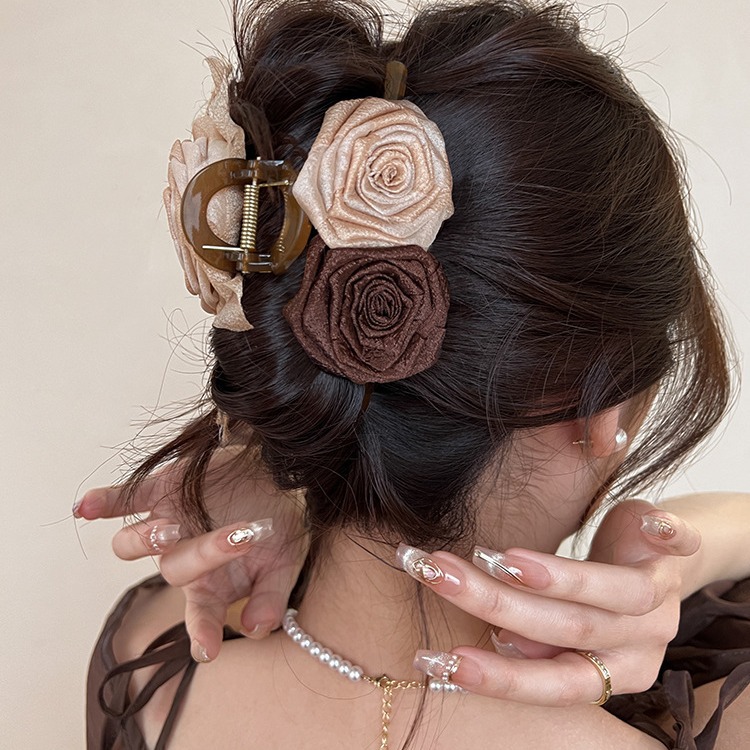 花仙子~手作款玫瑰花朵抓夹女高级感后脑勺鲨鱼夹子早春发卡头饰