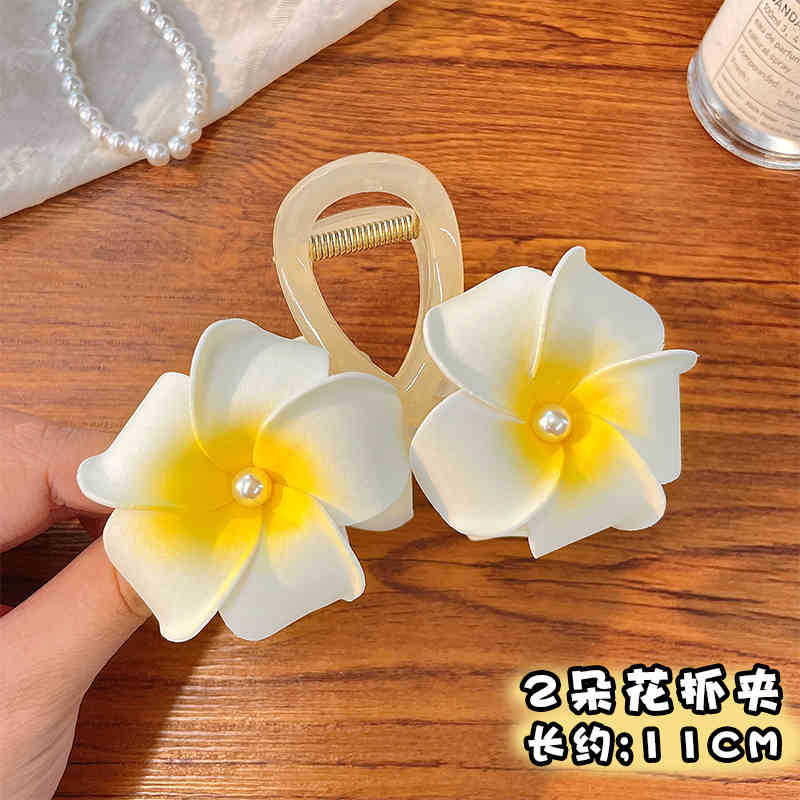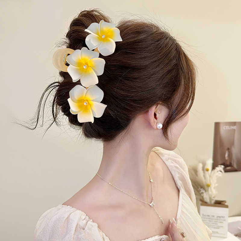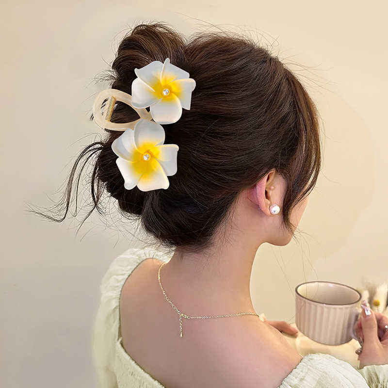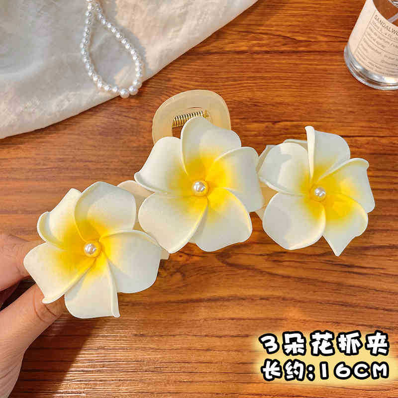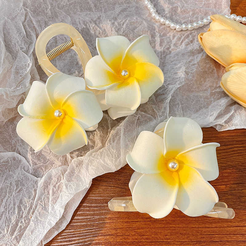 鸡蛋花头饰仿真花甜美花朵发夹鲨鱼夹出游海边夹子复古装夹子头饰