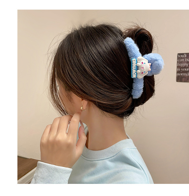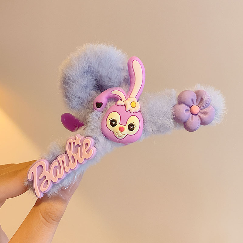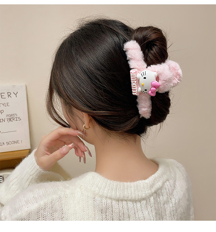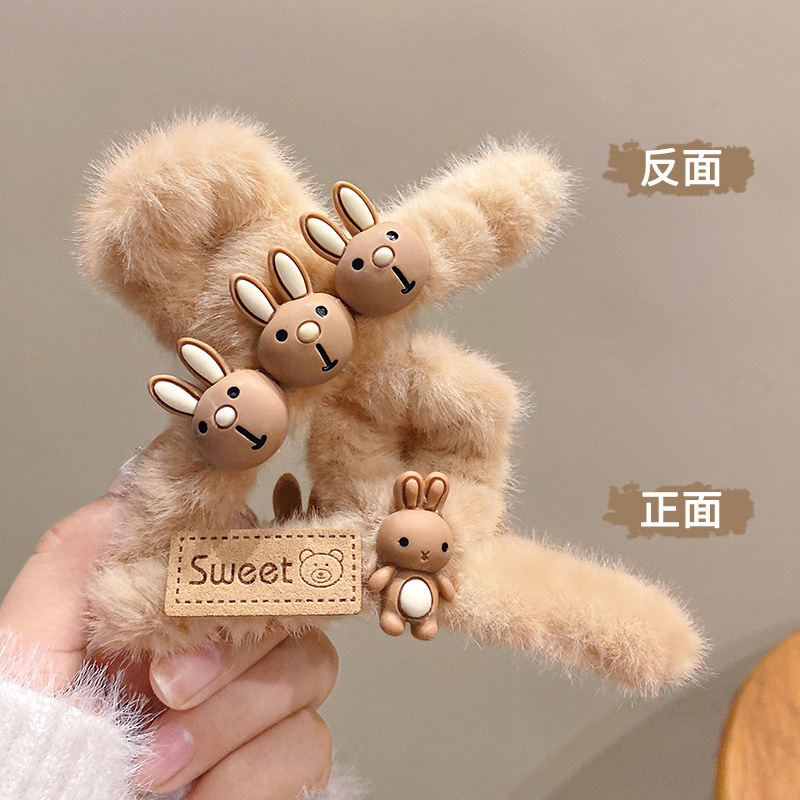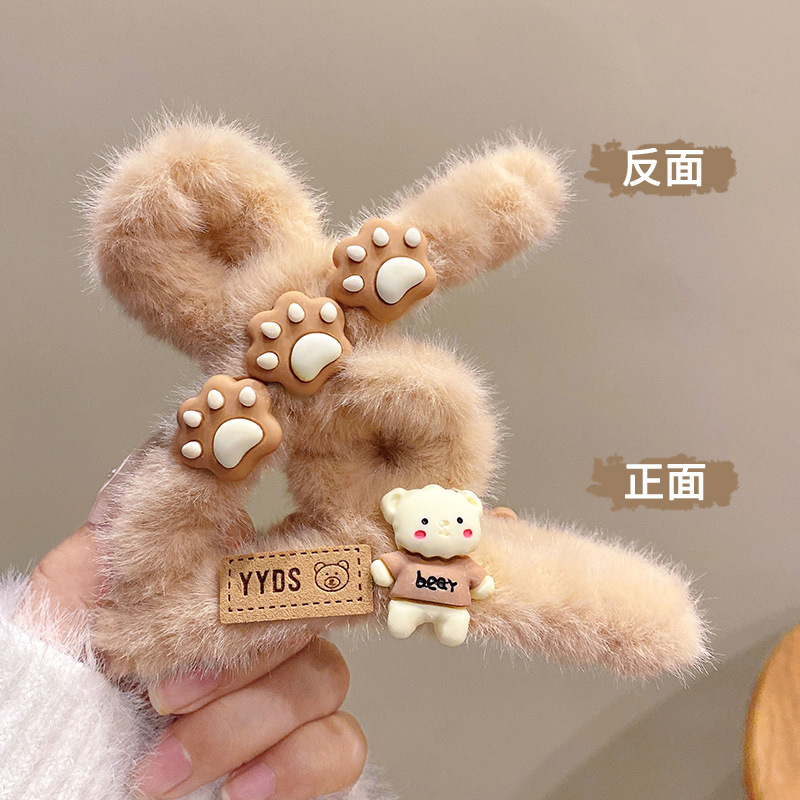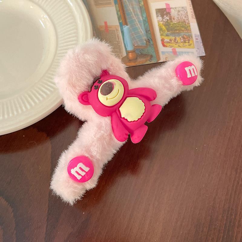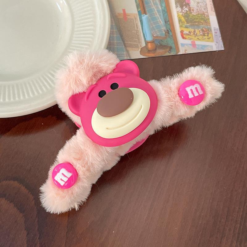可爱毛绒绒大号草莓熊抓夹卡通发夹秋冬新款甜美少女心鲨鱼夹发饰
