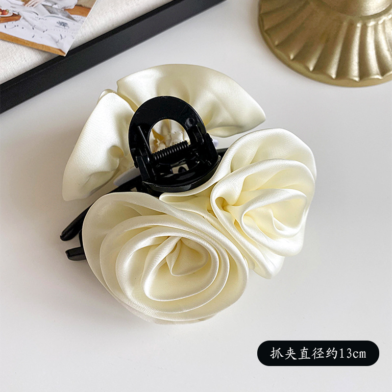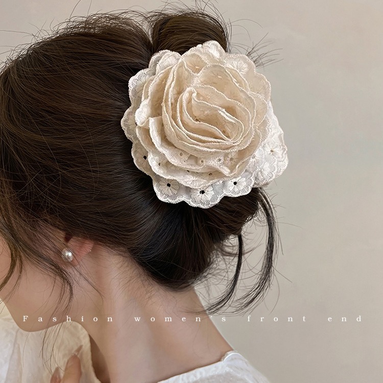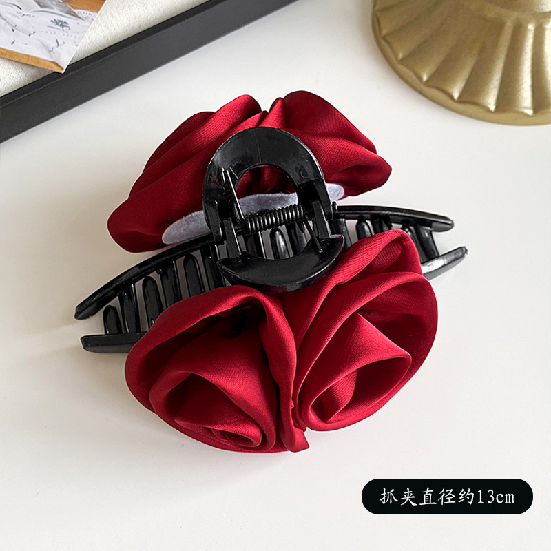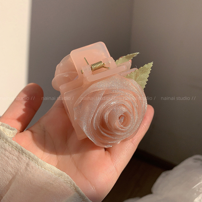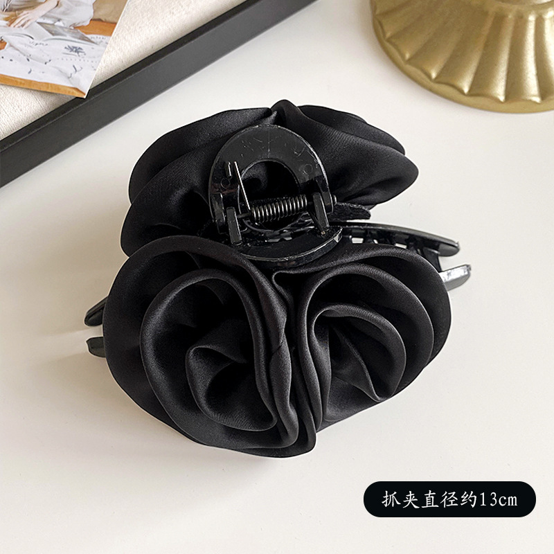 花朵抓夹玫瑰花半扎发夹女新款高端高级感头饰大花大号鲨鱼夹