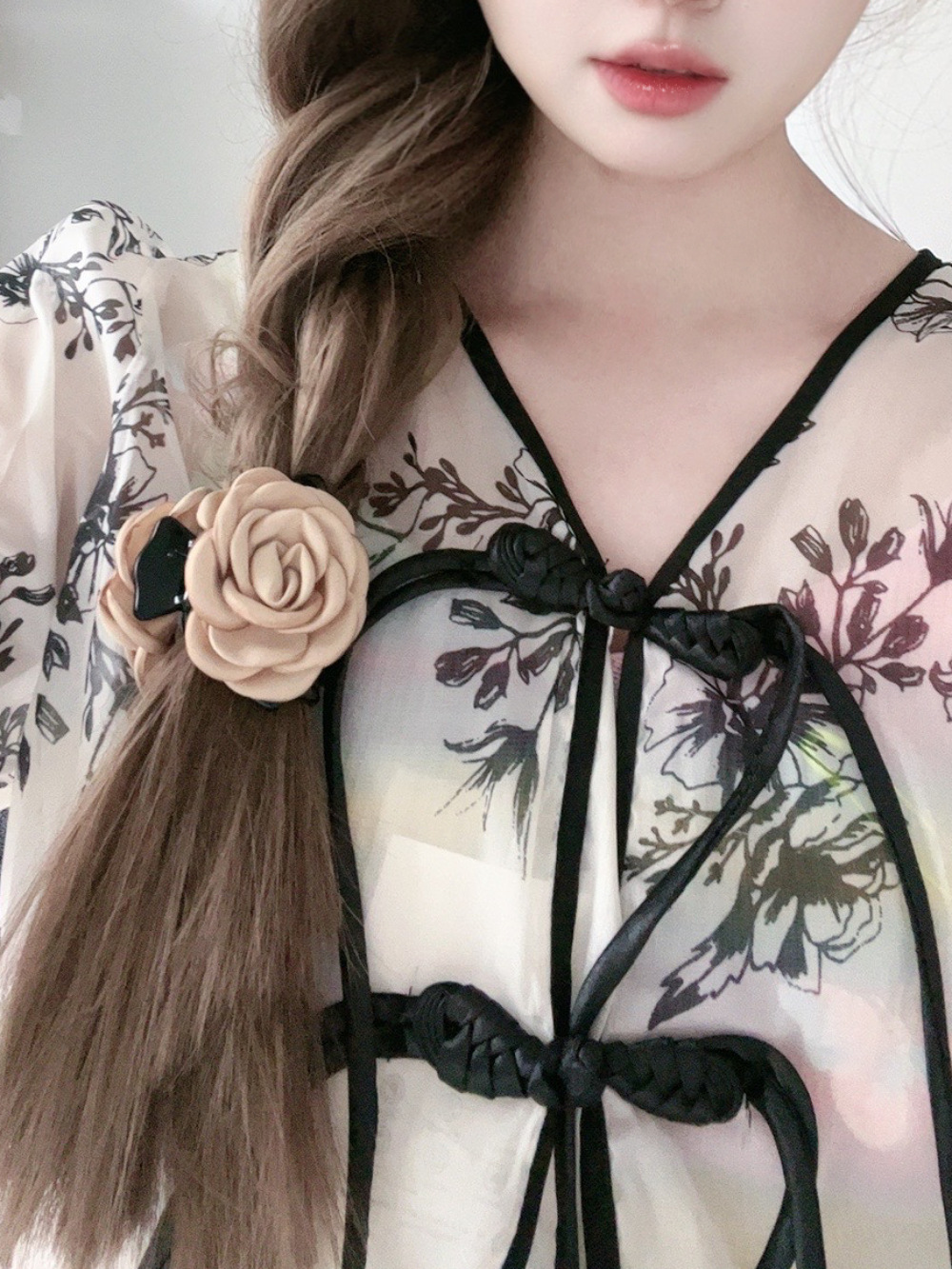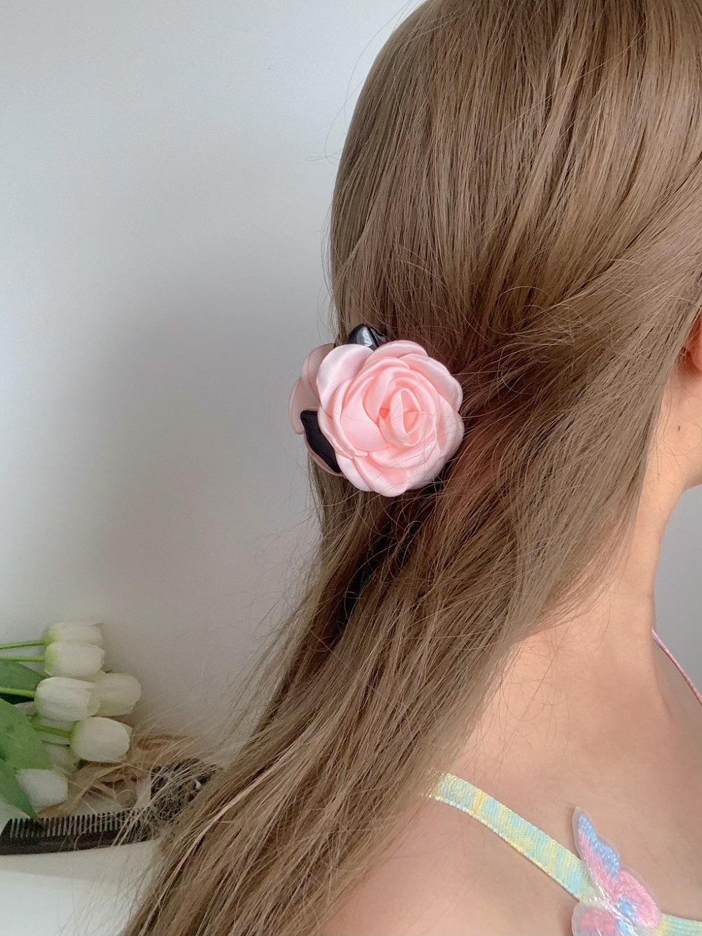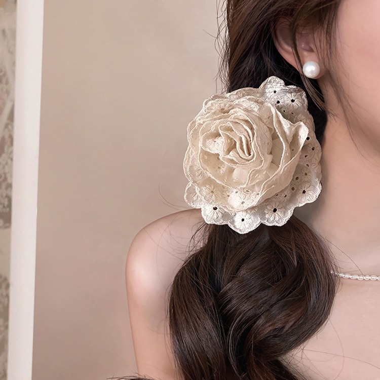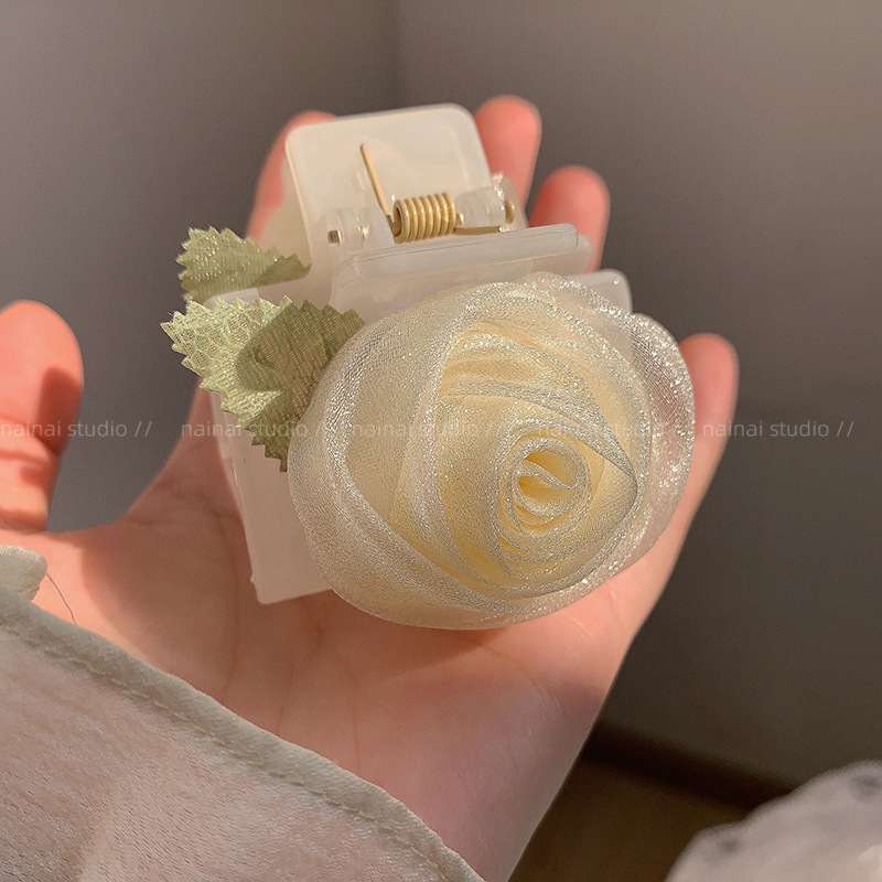 花朵抓夹玫瑰花半扎发夹女新款高端高级感头饰大花大号鲨鱼夹