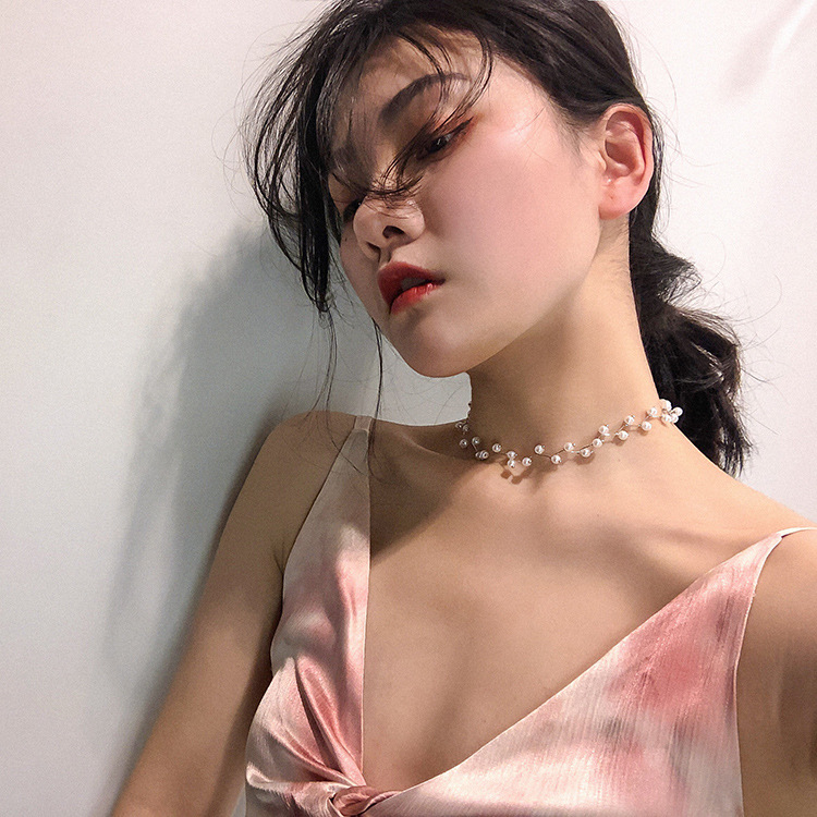 甜美风轻奢小众复古双层珍珠项链女新款高级感锁骨链颈带颈链