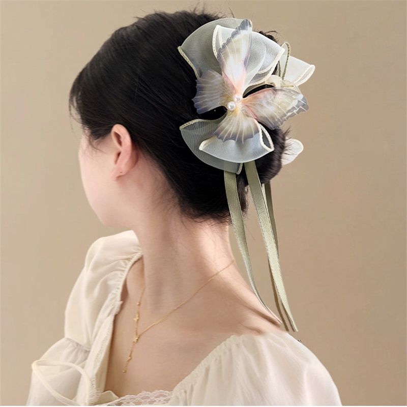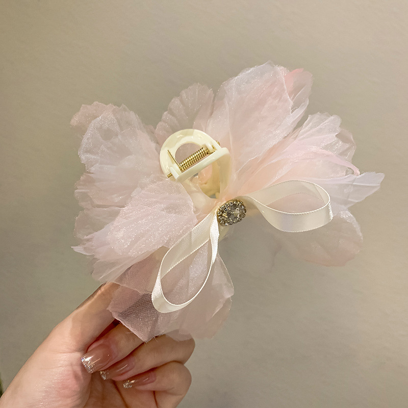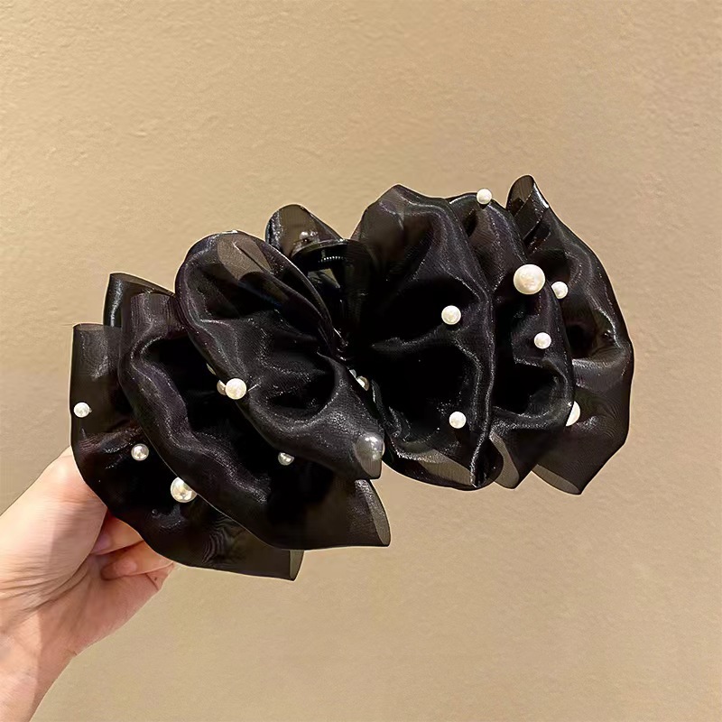 水钻波点蝴蝶结抓夹女夏天新款高级感泡泡鲨鱼夹后脑勺发夹