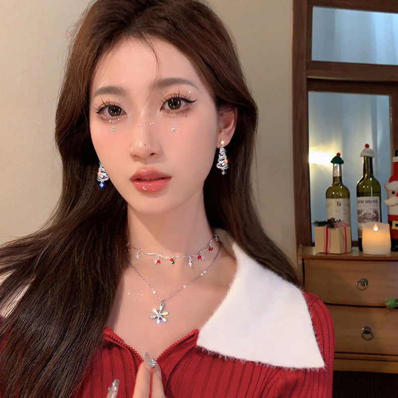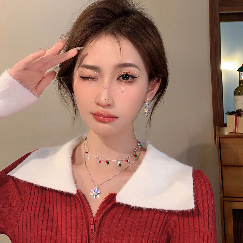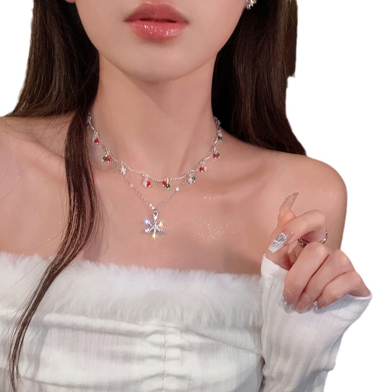 春日浪漫!彩色串珠雪花双层项链轻奢小众高级感颈链锁骨链配饰女