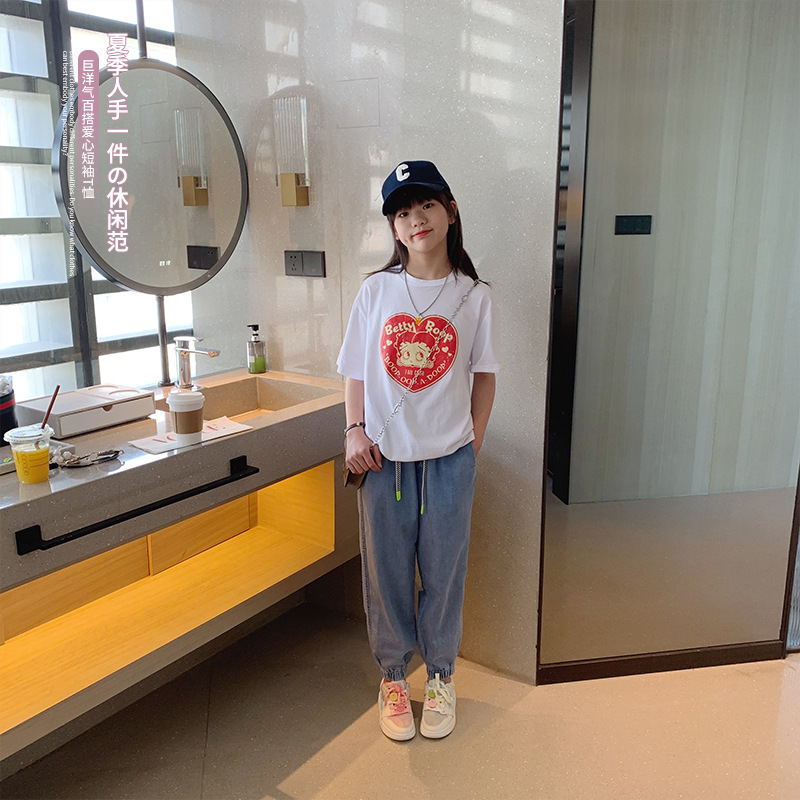 女童短袖纯棉T恤韩版休闲中大童印花半袖t女孩洋气宽松夏季童装