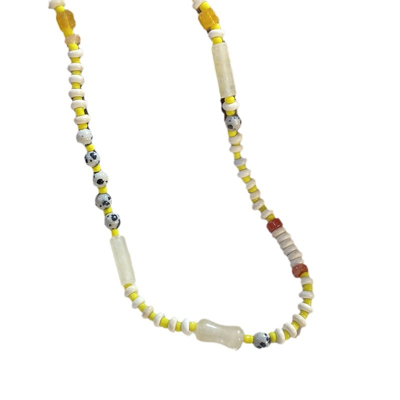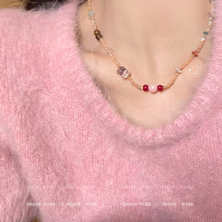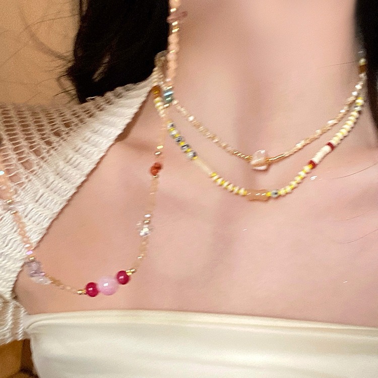 没饰找饰!彩色天然石串珠项链女款新款小众复古锁骨链高级感