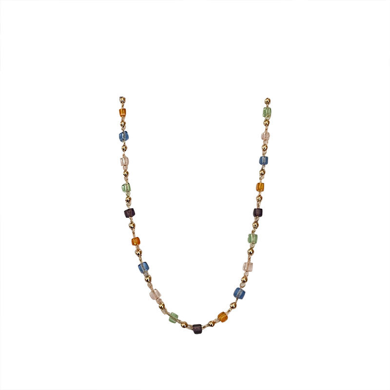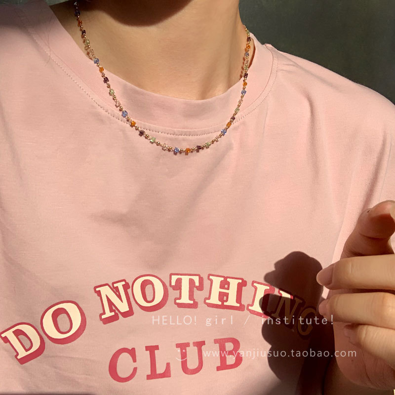 彩色水晶串珠项链女新款爆款轻奢小众设计感choker颈链锁骨链