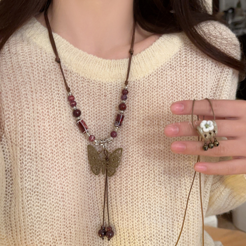 蝴蝶流苏项链女韩国轻奢高级感锁骨链新款爆款小众百搭配饰品
