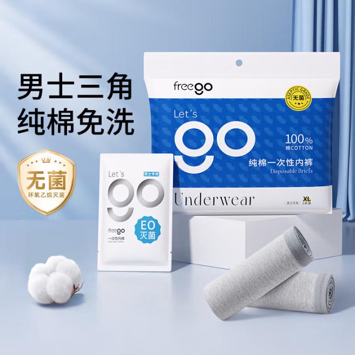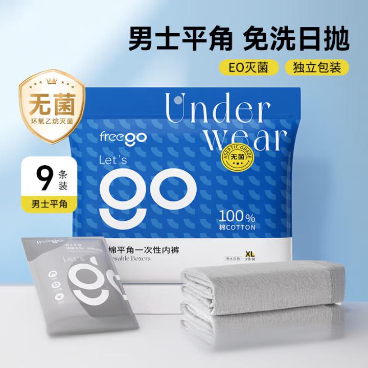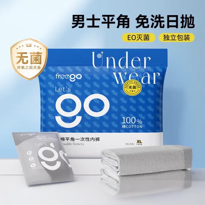 纯棉平角一次性内裤男全棉灭菌免洗独立装旅行商务出差男灰平角