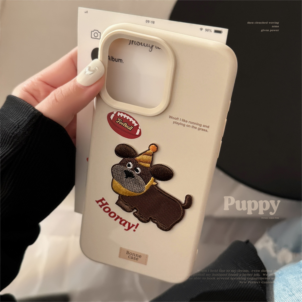 美式复古iphone15pro手机壳max苹果16刺绣小狗13卡通14适用12防摔
