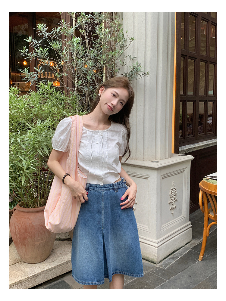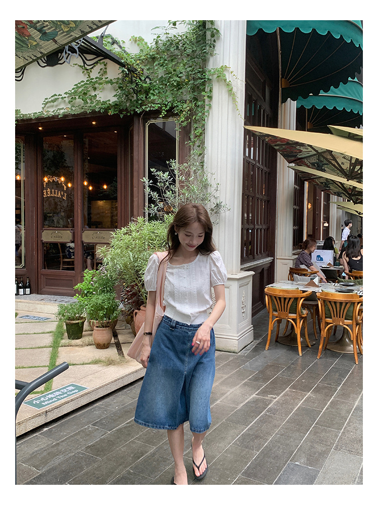 泡泡袖设计遮肉显瘦的同时,也为整体注入少女感
