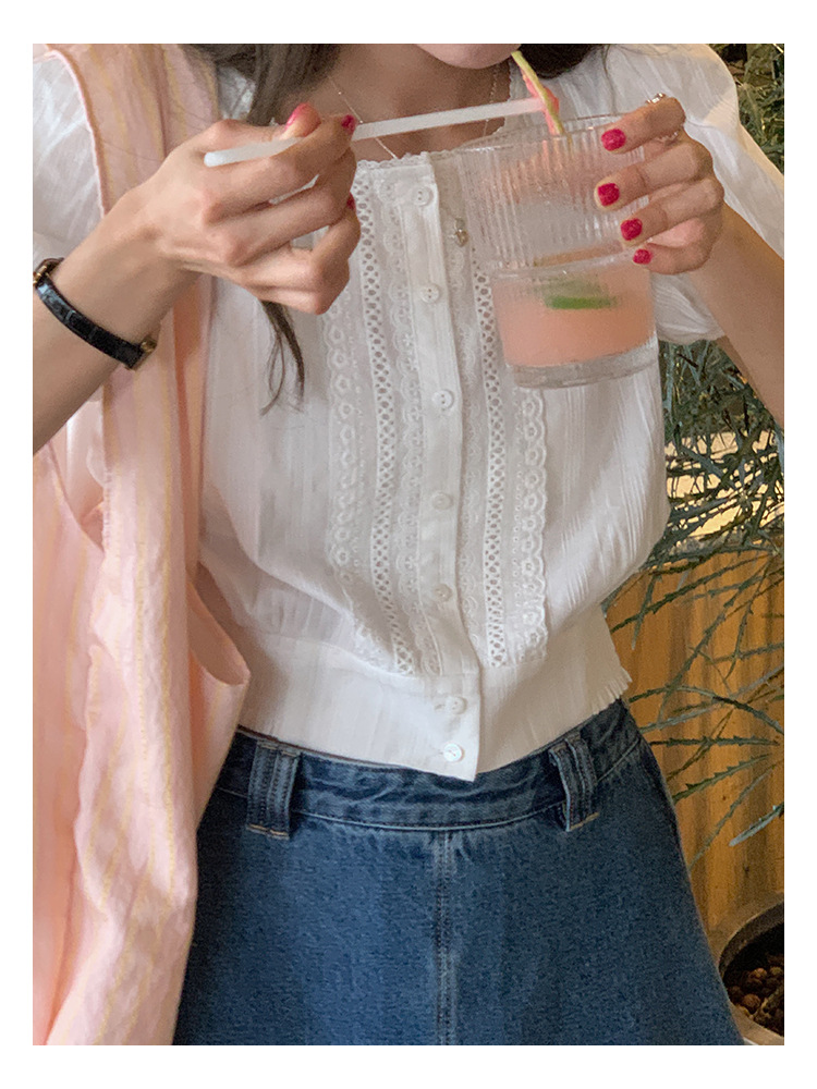 领口装有花边织带设计,精至感爆棚