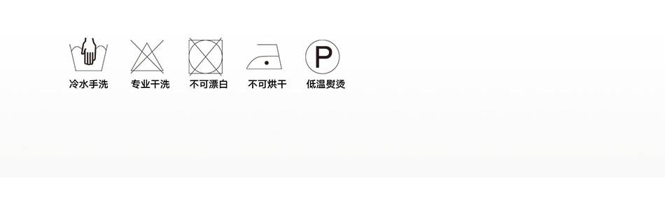 | 建议温水手洗,切忌用力搓洗,不可用力拧干,请勿暴晒 |
