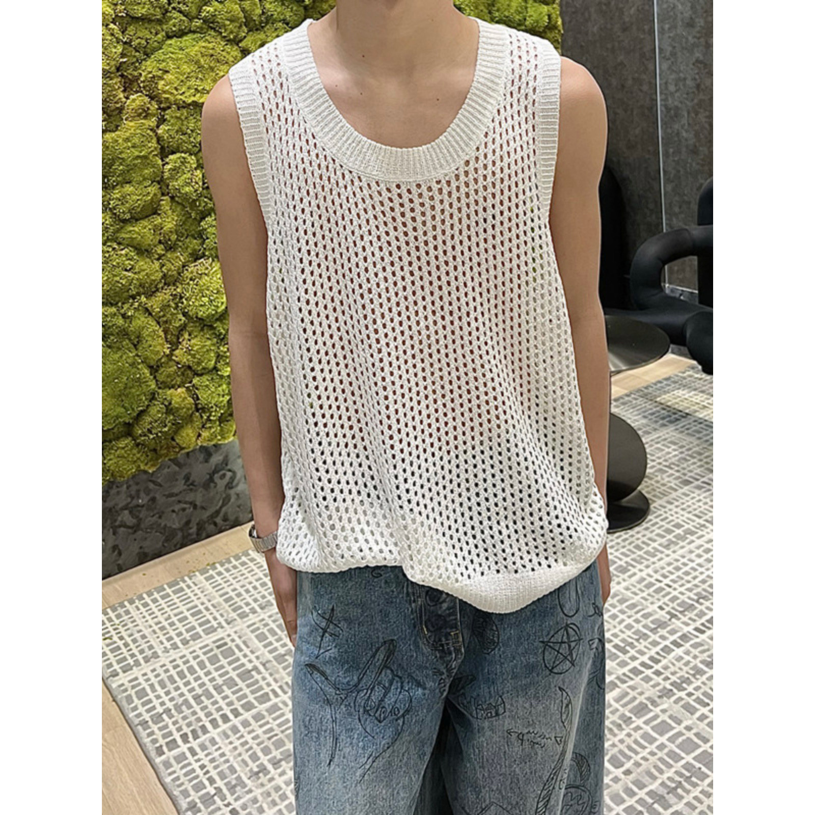无袖坎肩镂空背心高级感男小众设计打底休闲夏季新款针织短袖上衣