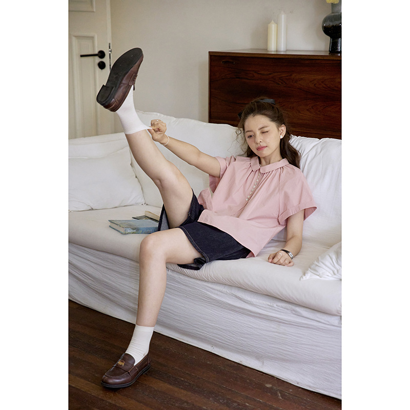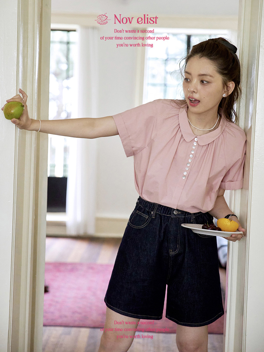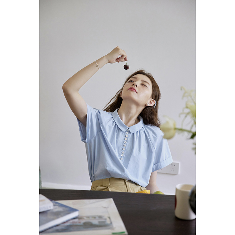 Nov elist 什一 法式复古娃娃领贝壳扣设计感衬衫夏季显瘦短袖女