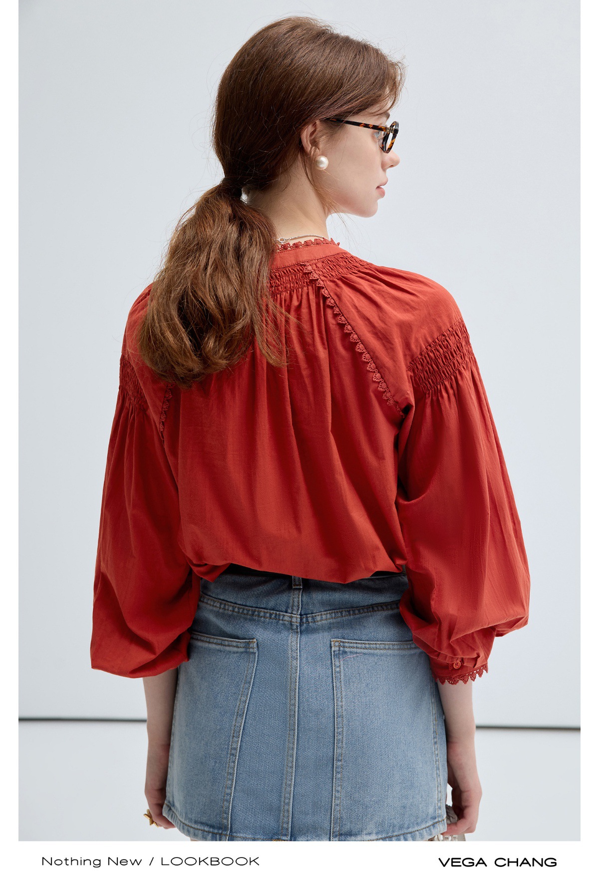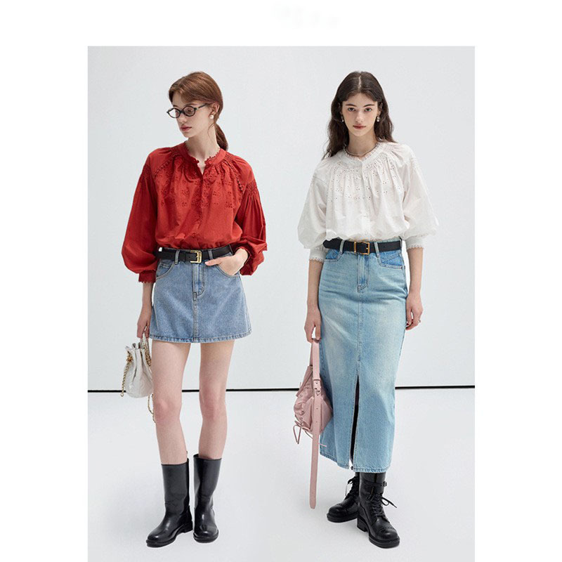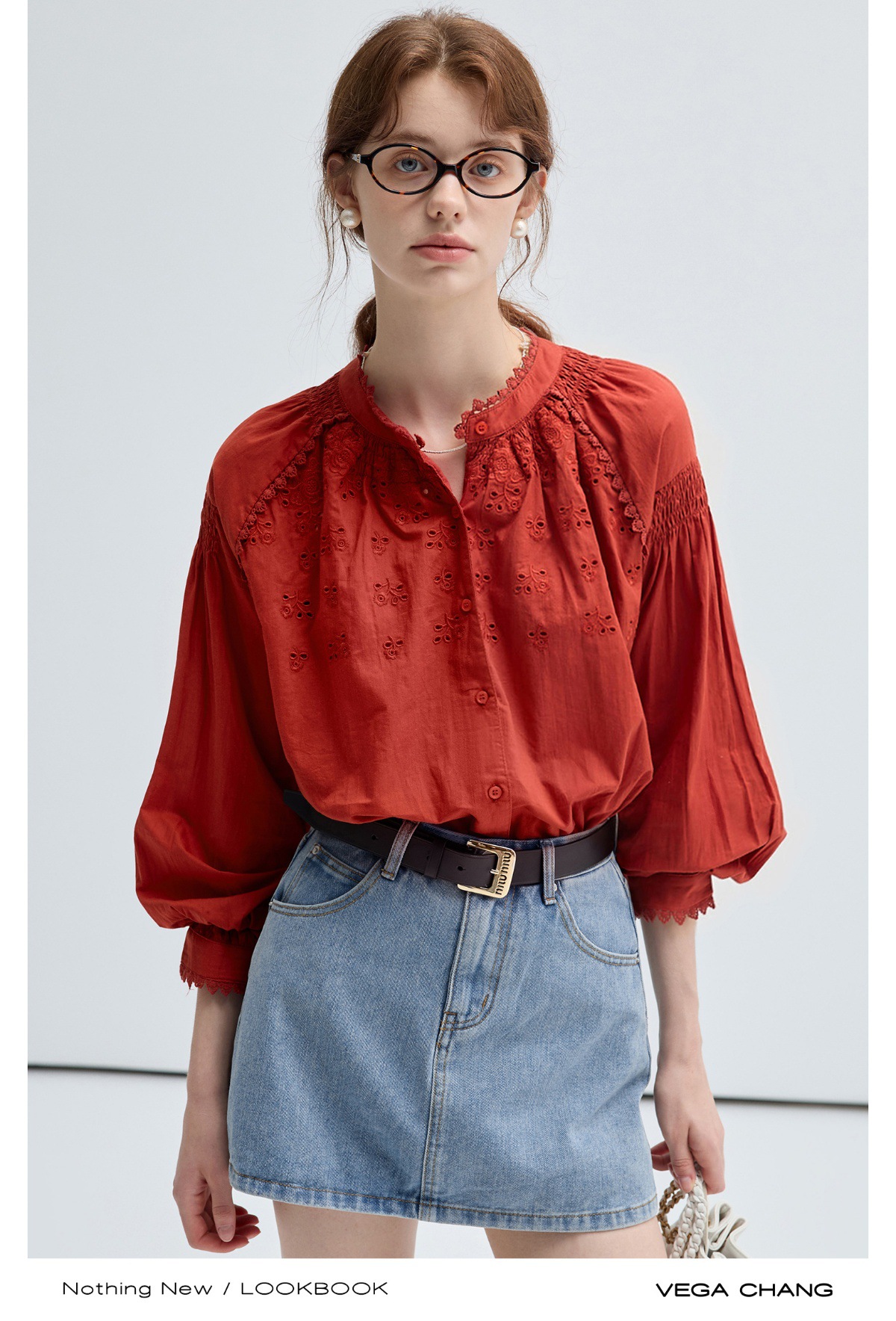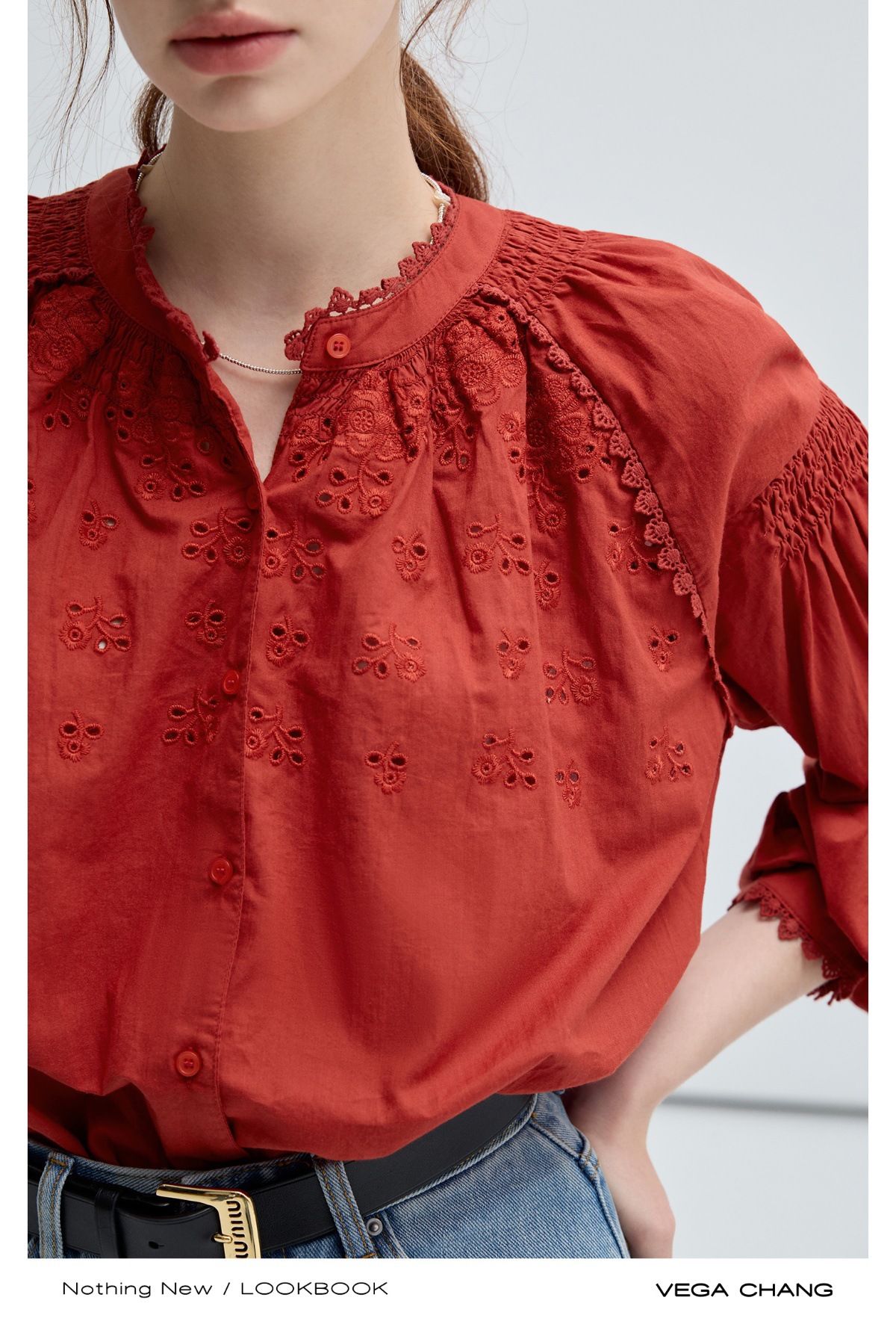 VEGA CHANG法式衬衫女2025年春季新款复古花边领缕空刺绣长袖上衣
