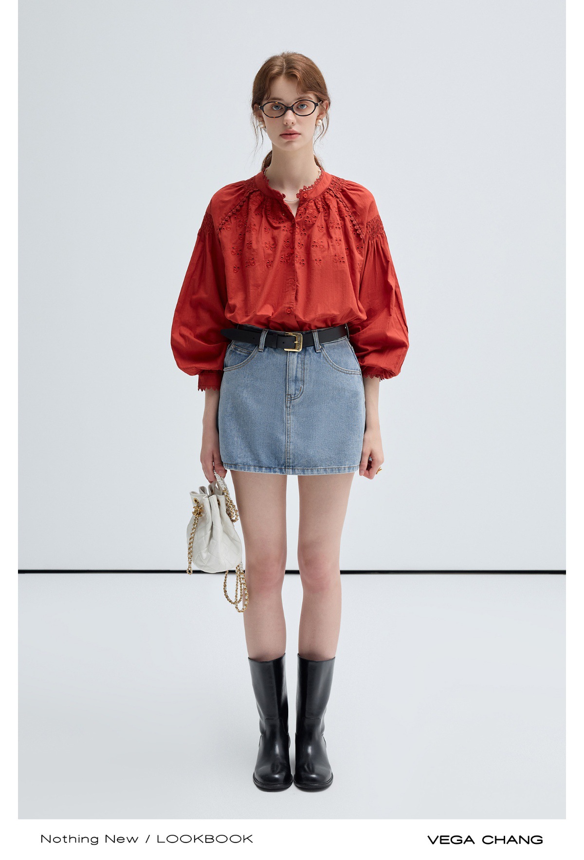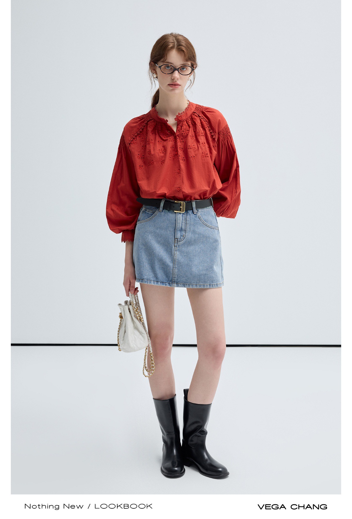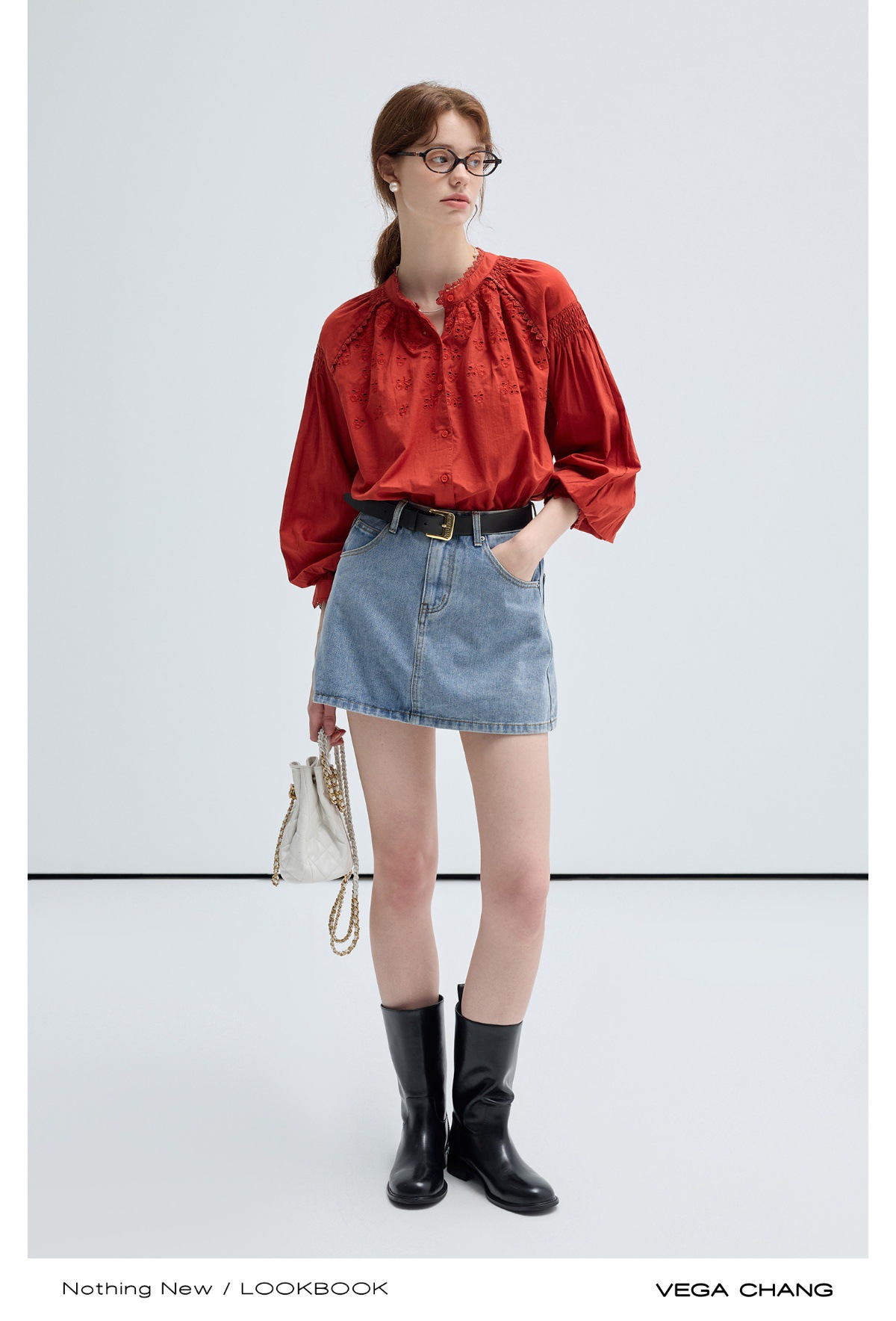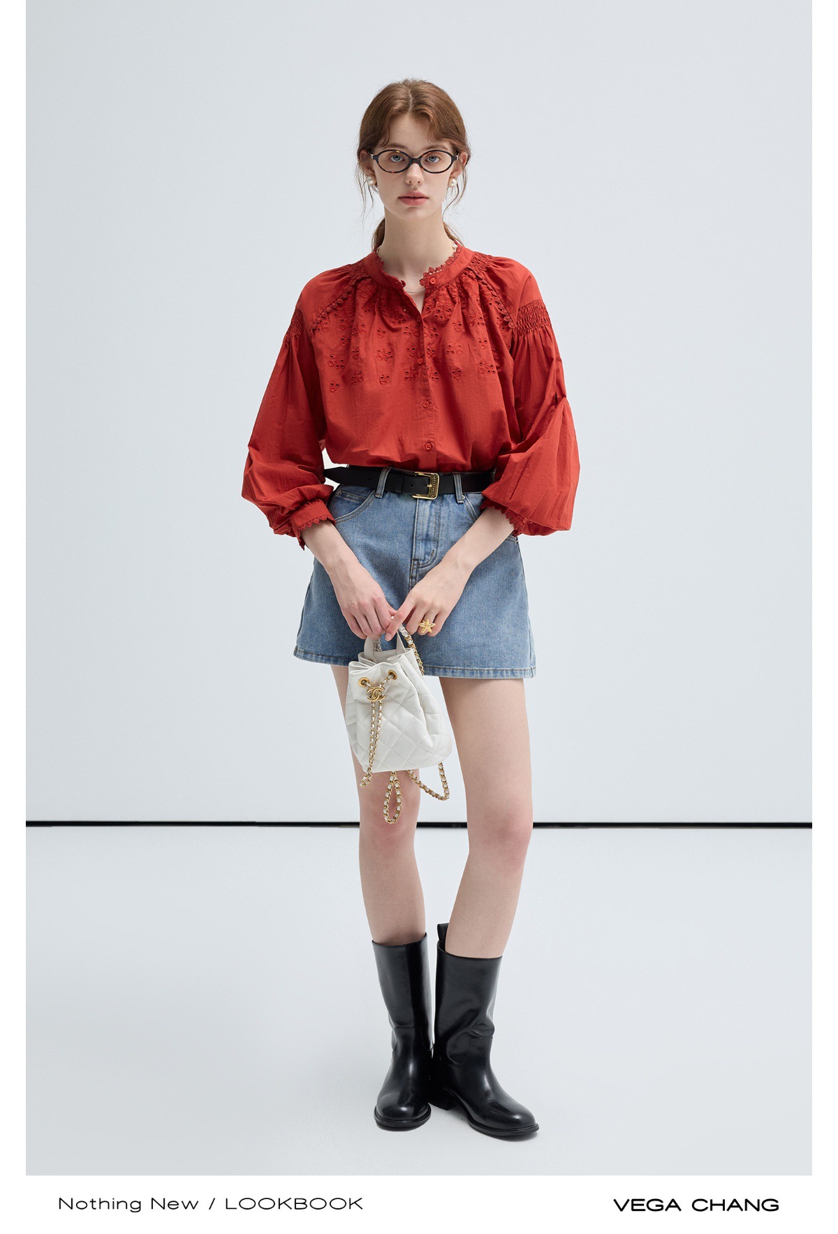 VEGA CHANG法式衬衫女2025年春季新款复古花边领缕空刺绣长袖上衣