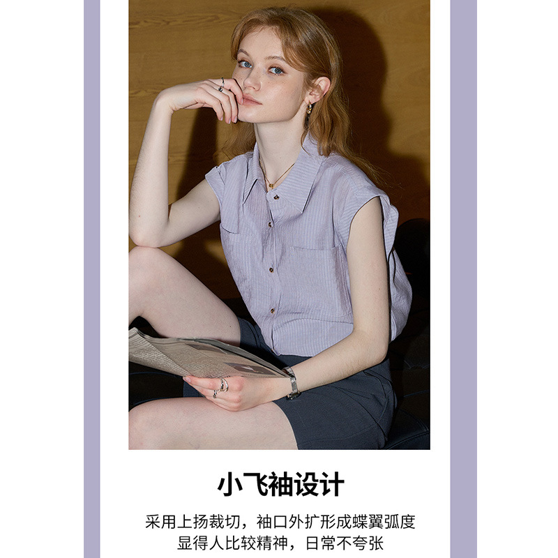 库恩玛维高智感大女主风条纹衬衫女2025年夏新款文艺风吊带两件套