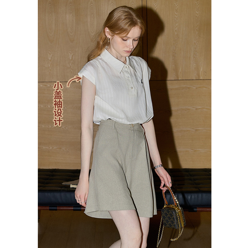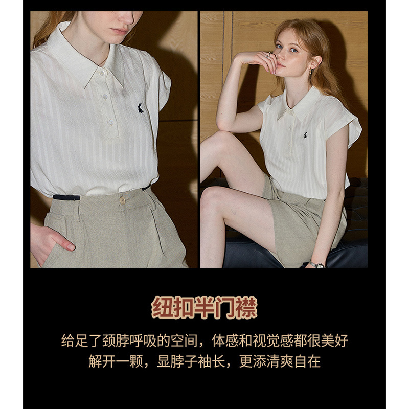 高智精英极简polo领无袖衬衫女2025年夏新款百搭刺绣上衣