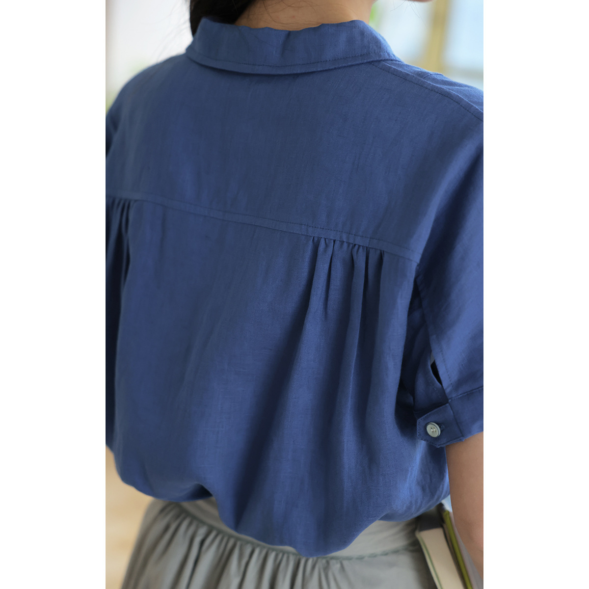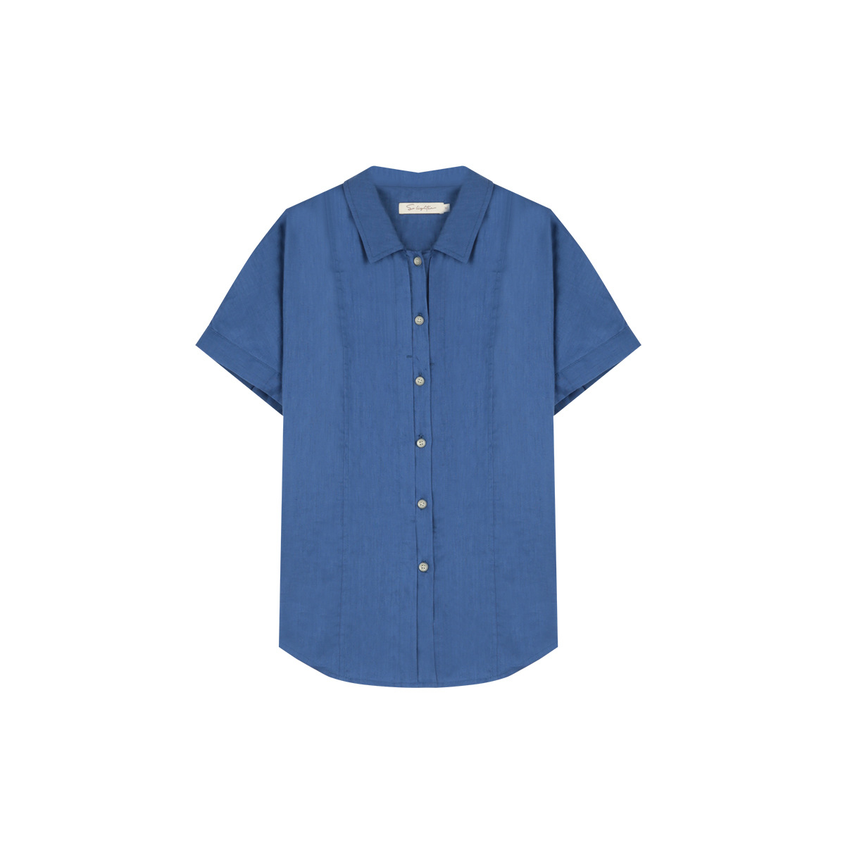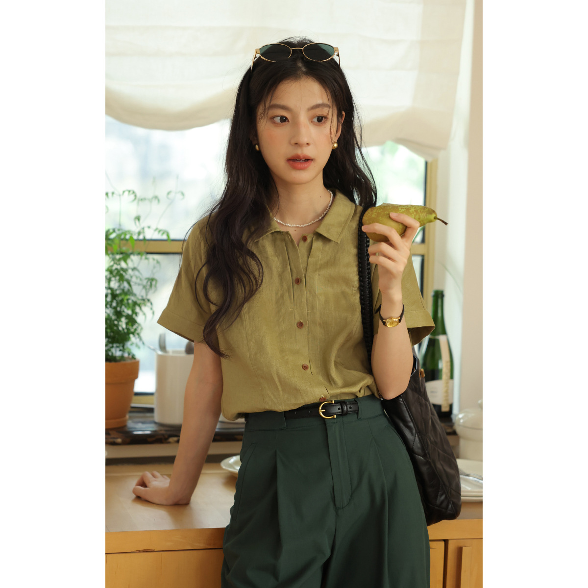 solighter 法式复古亚麻连袖衬衫女夏季新款显瘦短袖衬衣上衣