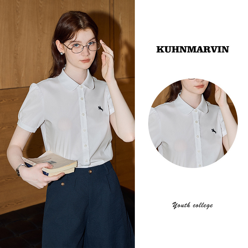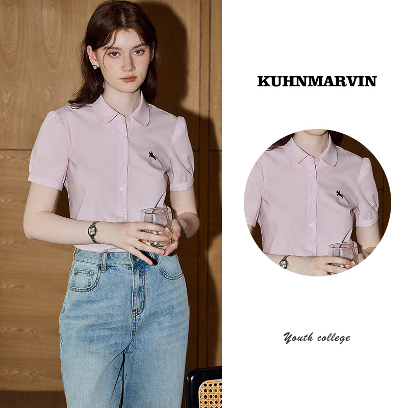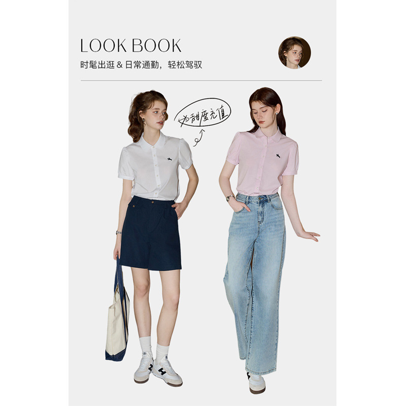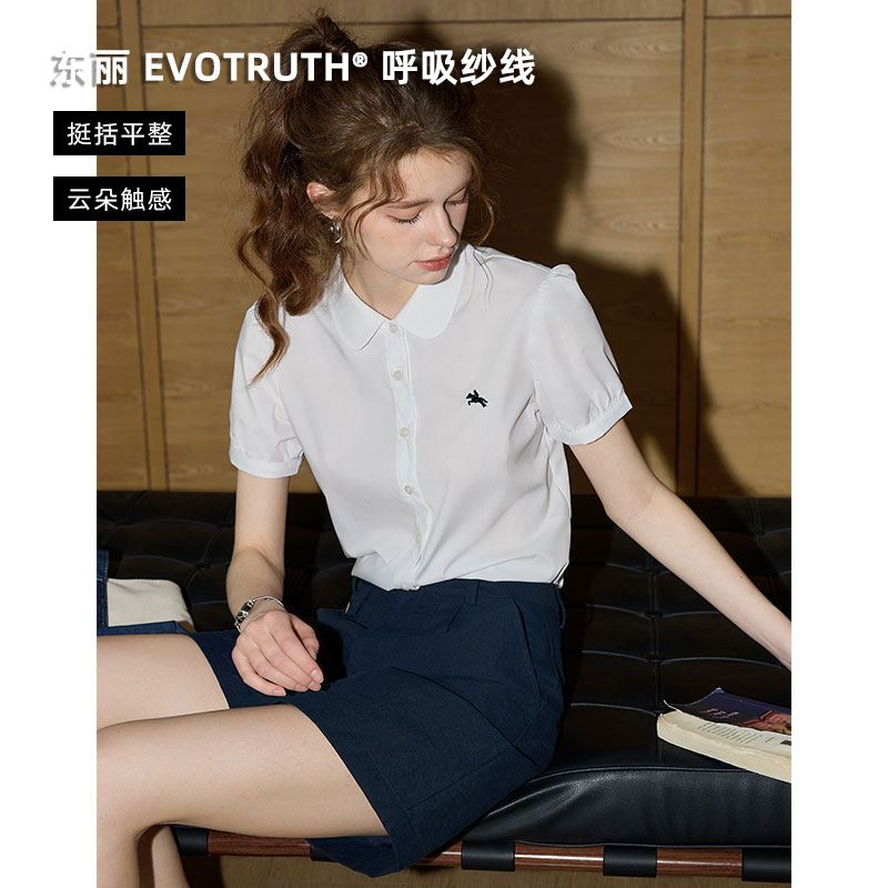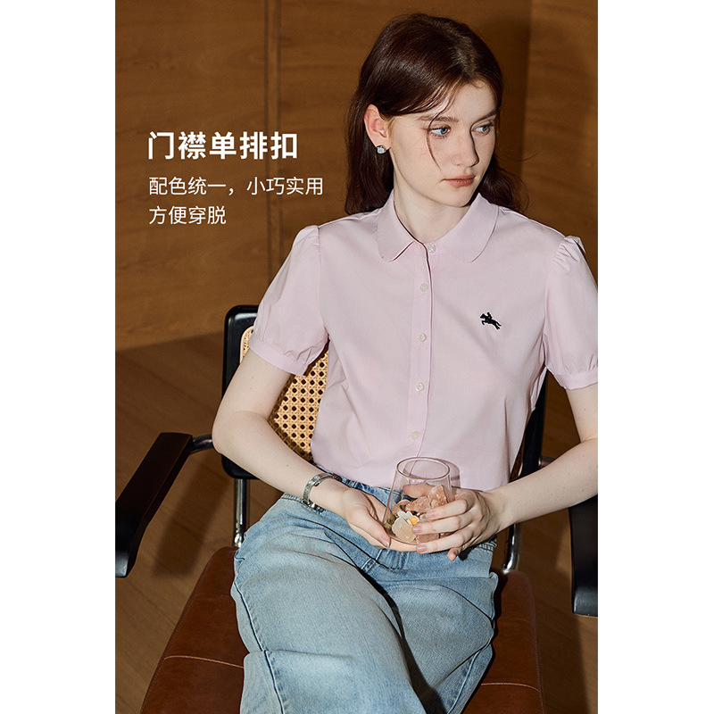 纯色短袖衬衫女2025夏季新款小众设计感显瘦衬衣