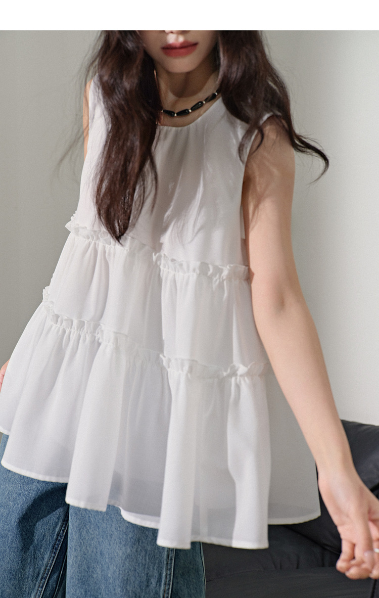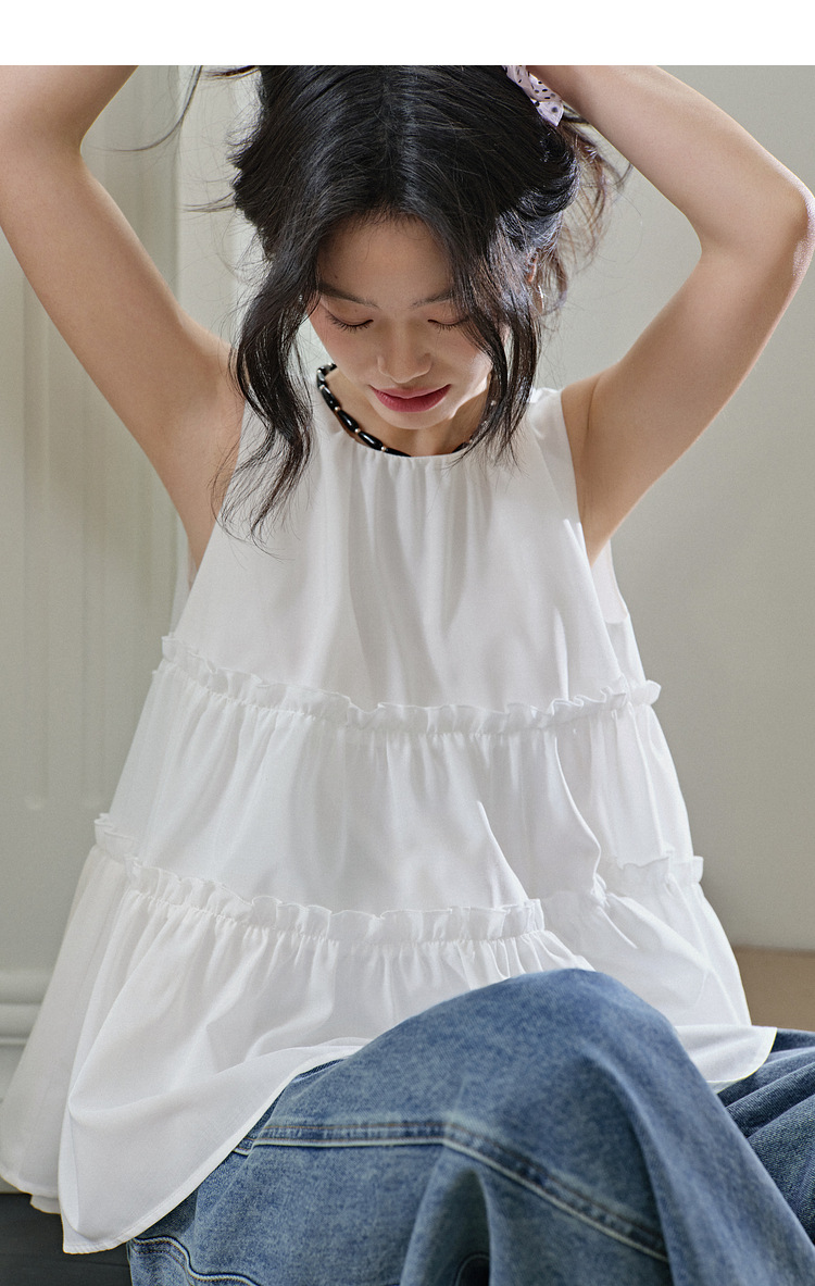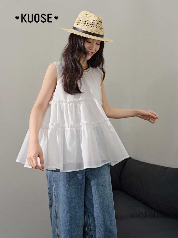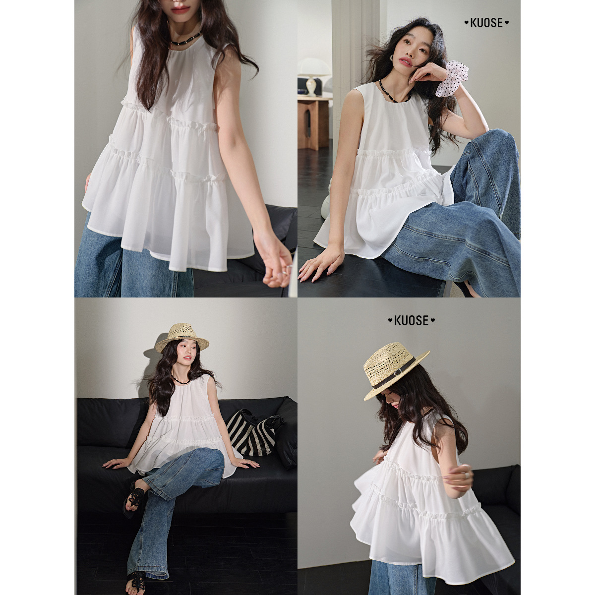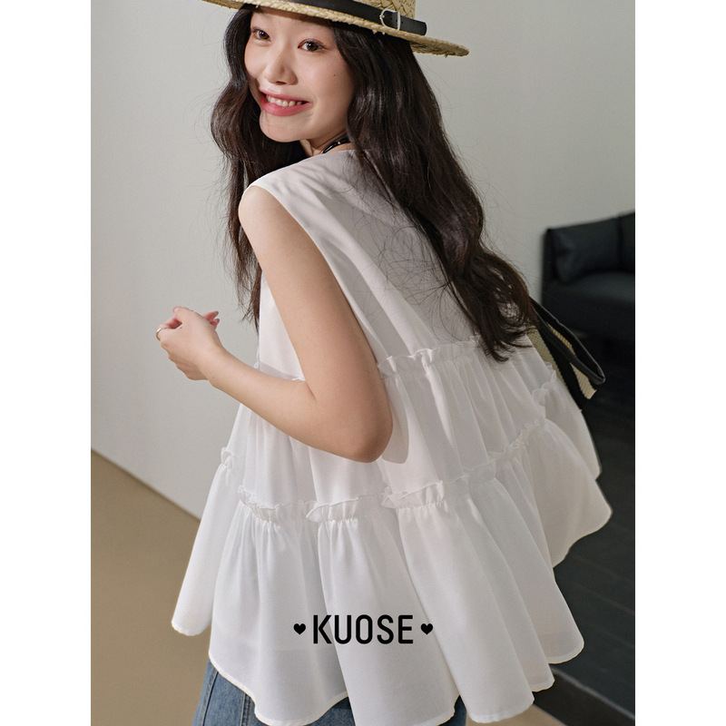 阔色法式白色木耳边背心衬衫女2025春夏季新款无袖娃娃衬衣上衣