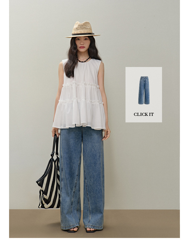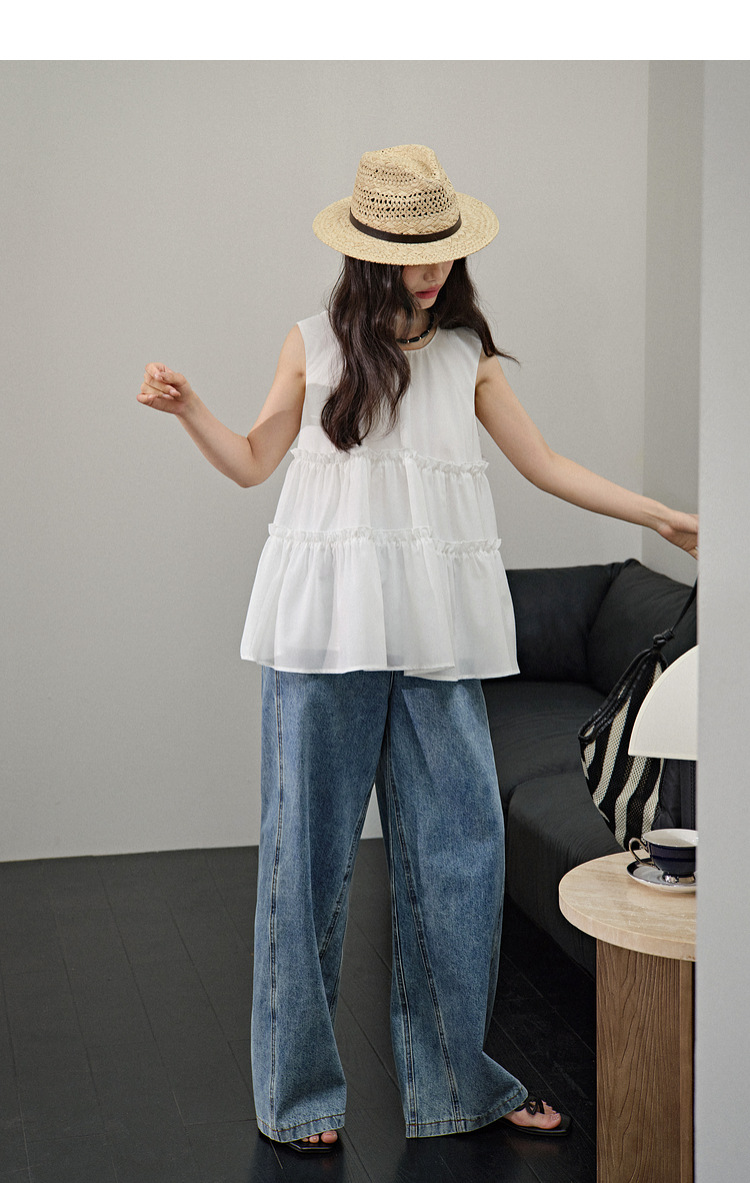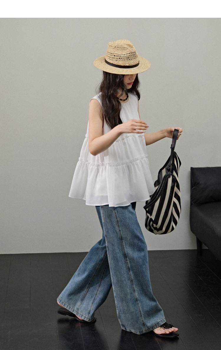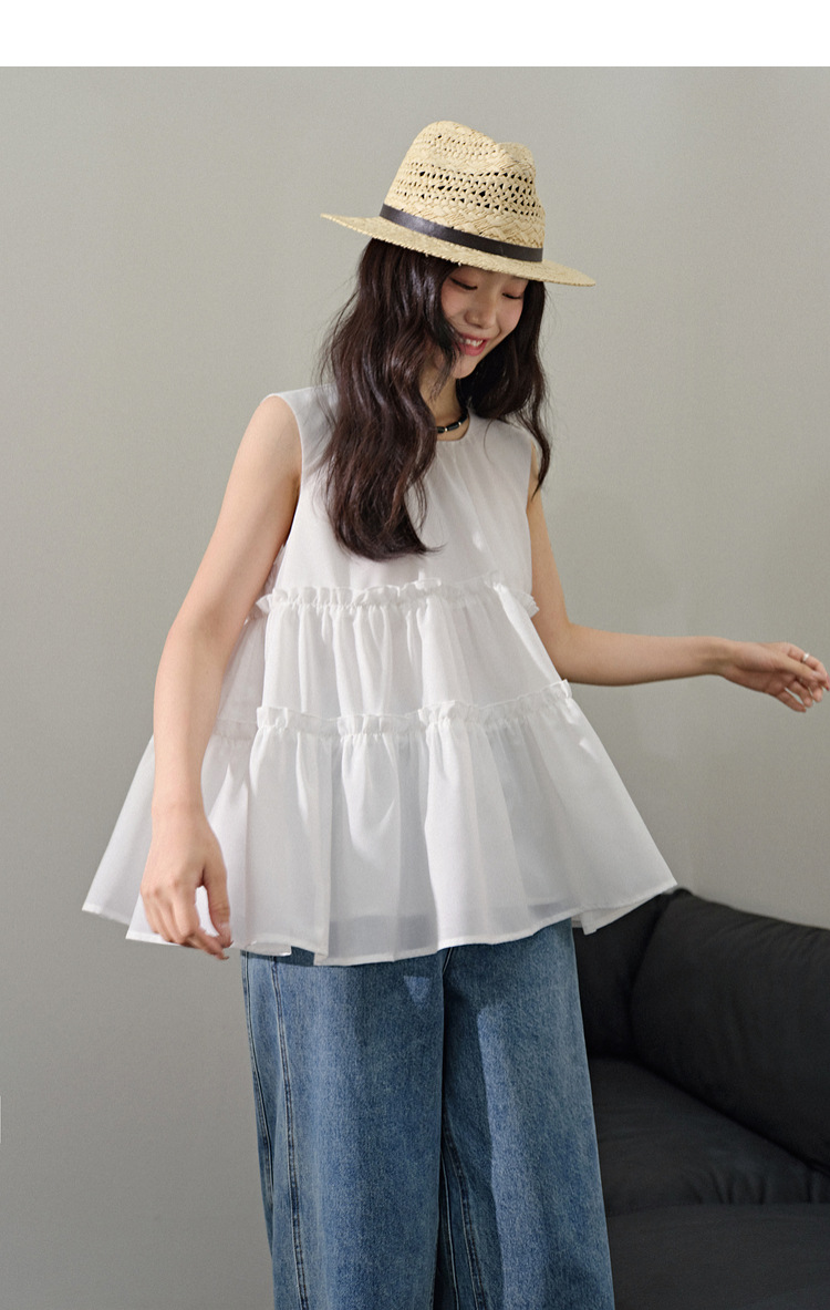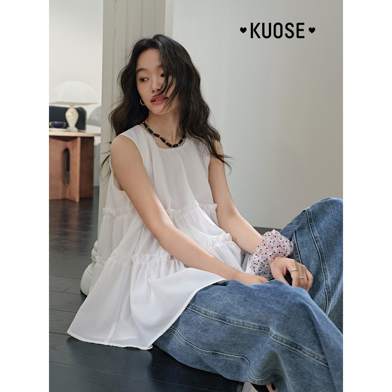 阔色法式白色木耳边背心衬衫女2025春夏季新款无袖娃娃衬衣上衣