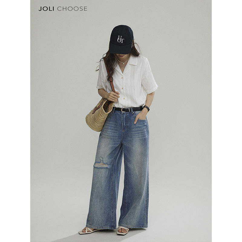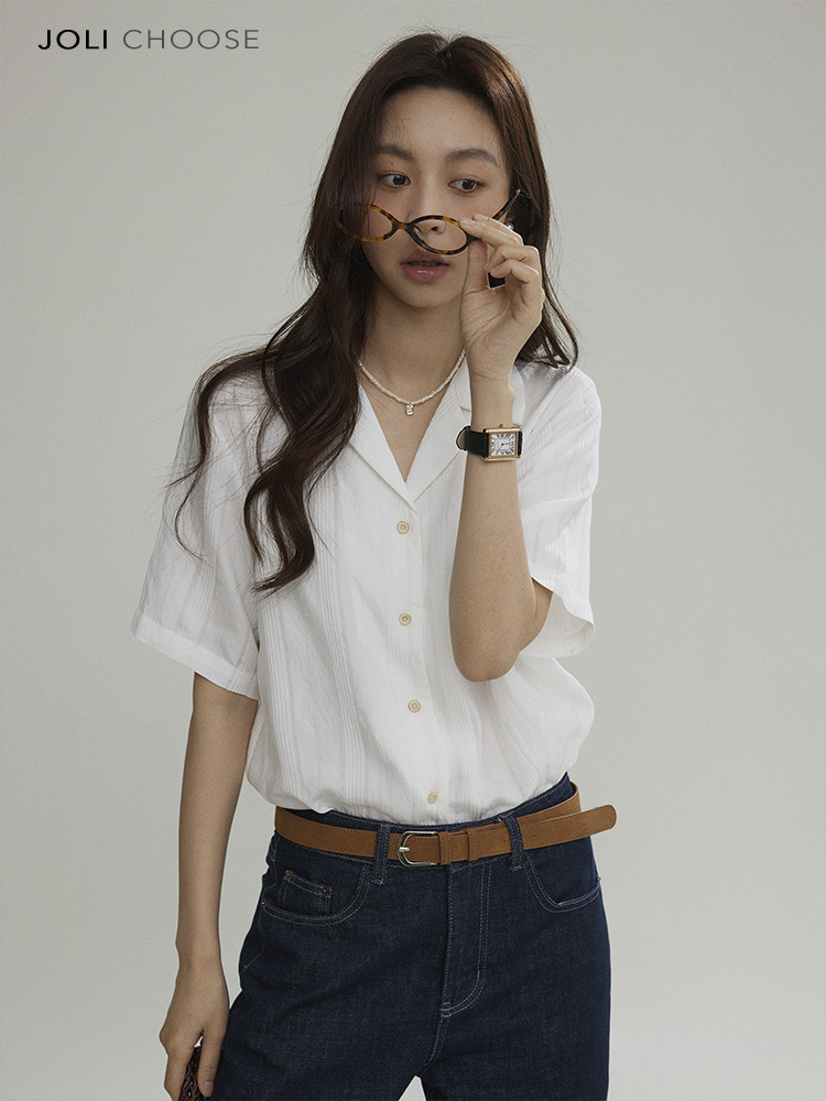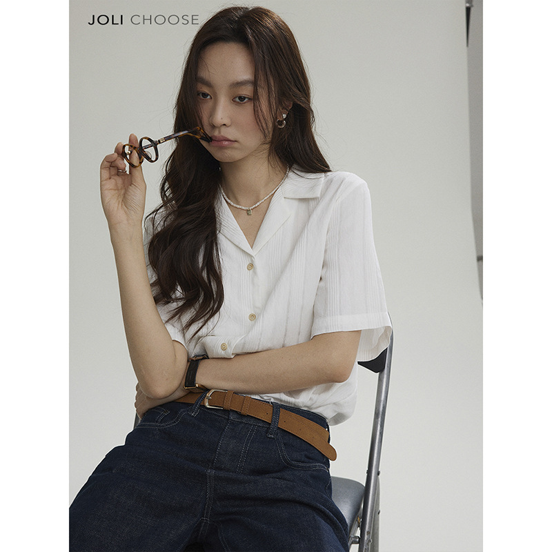 Joli Choose古巴领规则百搭轻薄衬衫女夏季法式简约宽松休闲衬衣