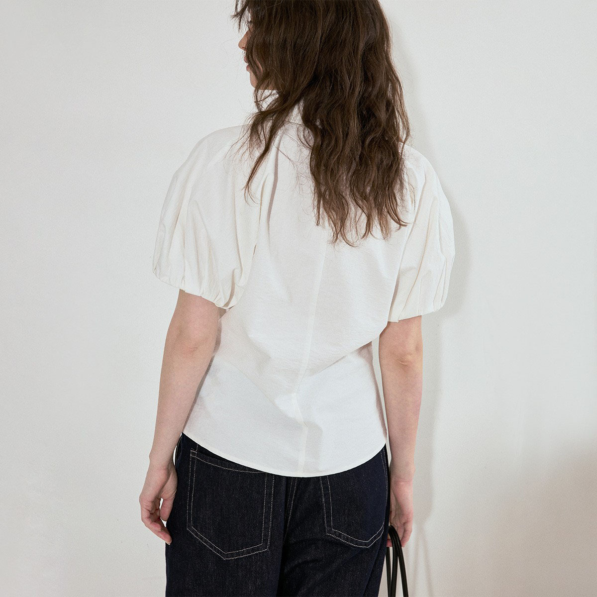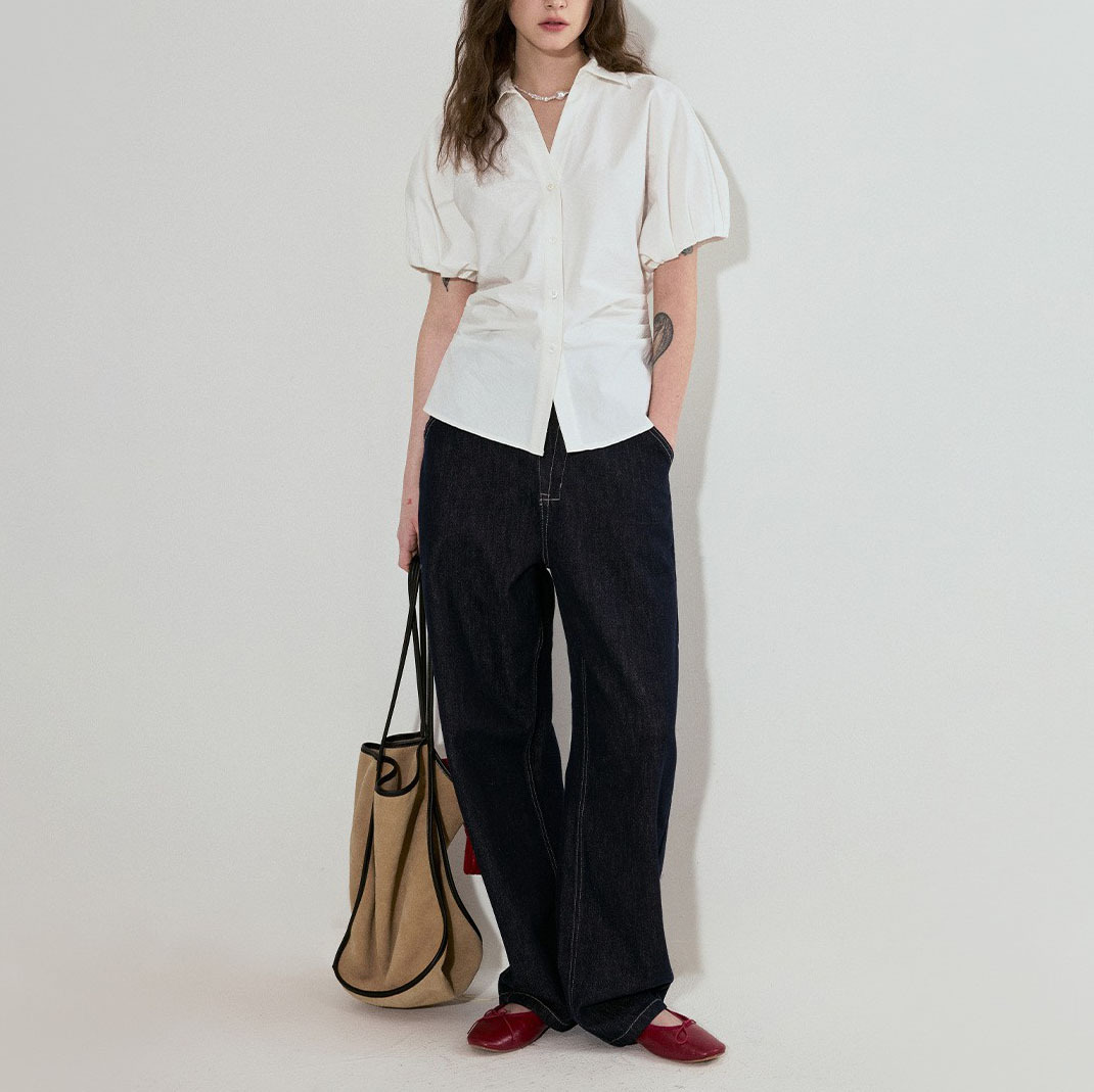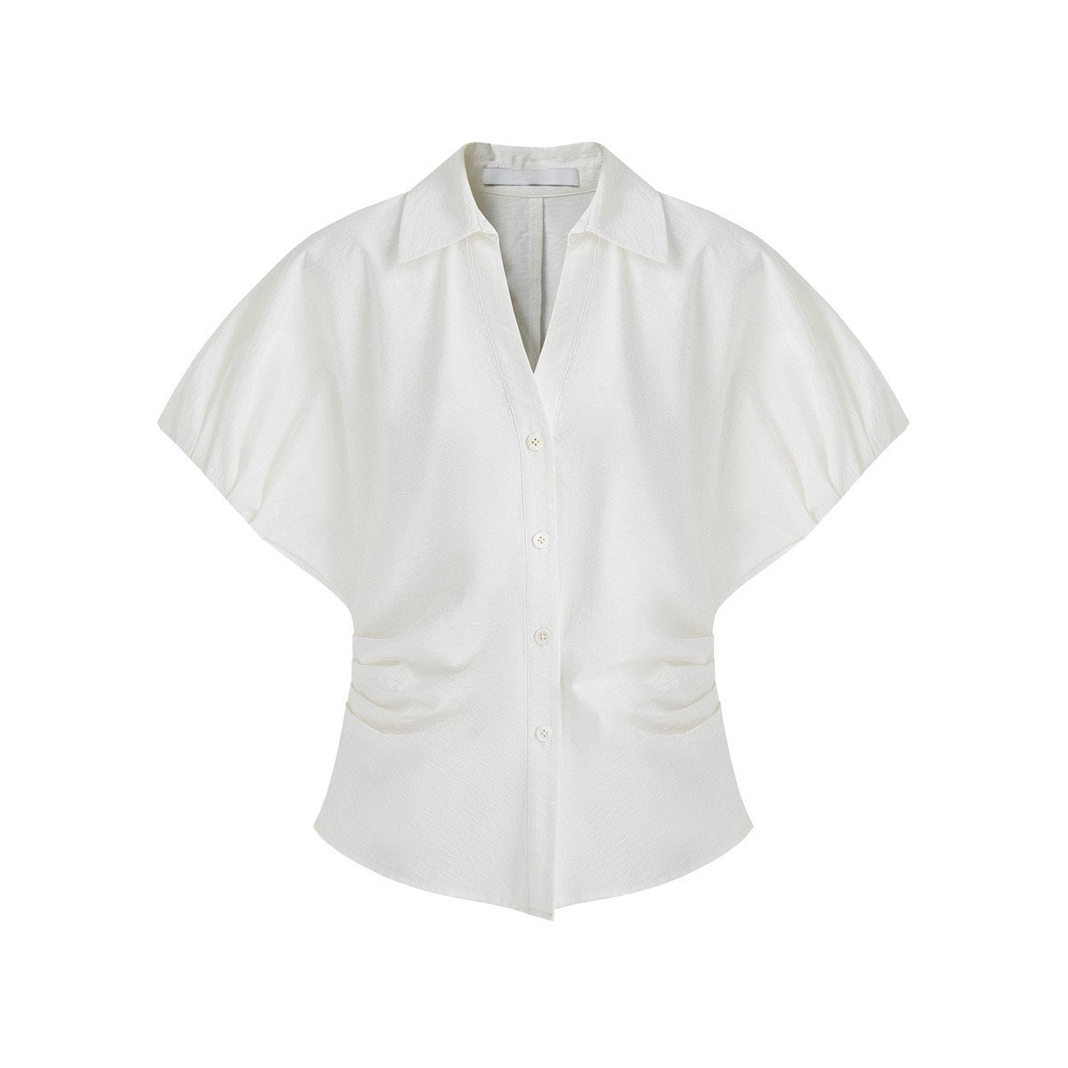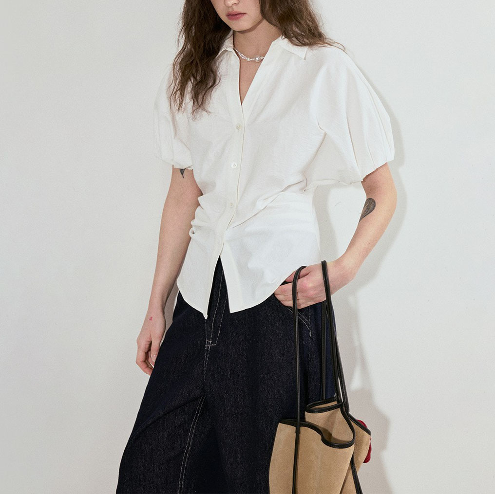 设计感立体连肩袖V领收腰白色短袖衬衫女设计感小众春夏新款