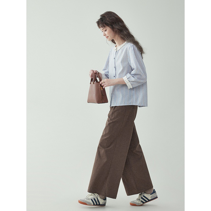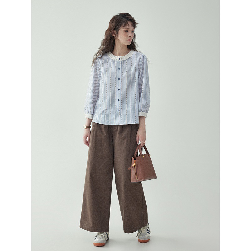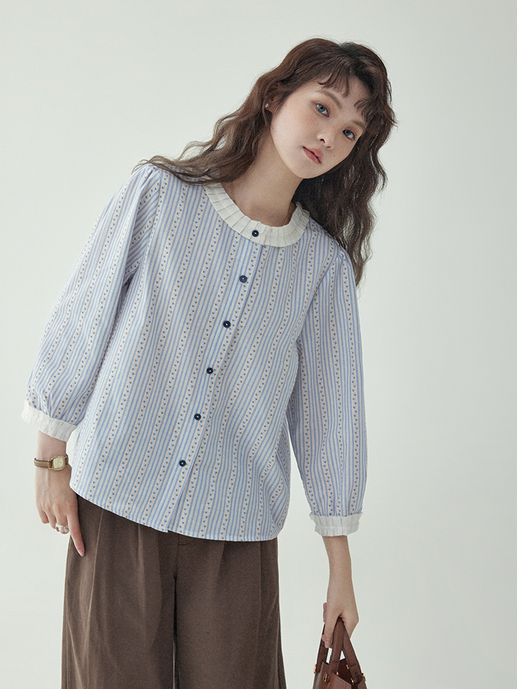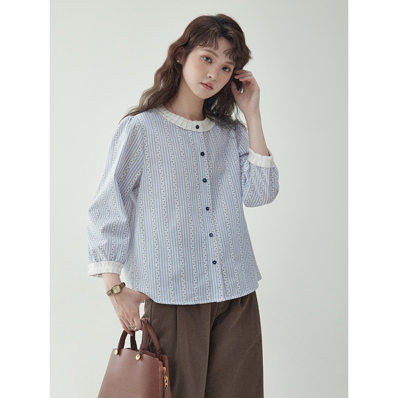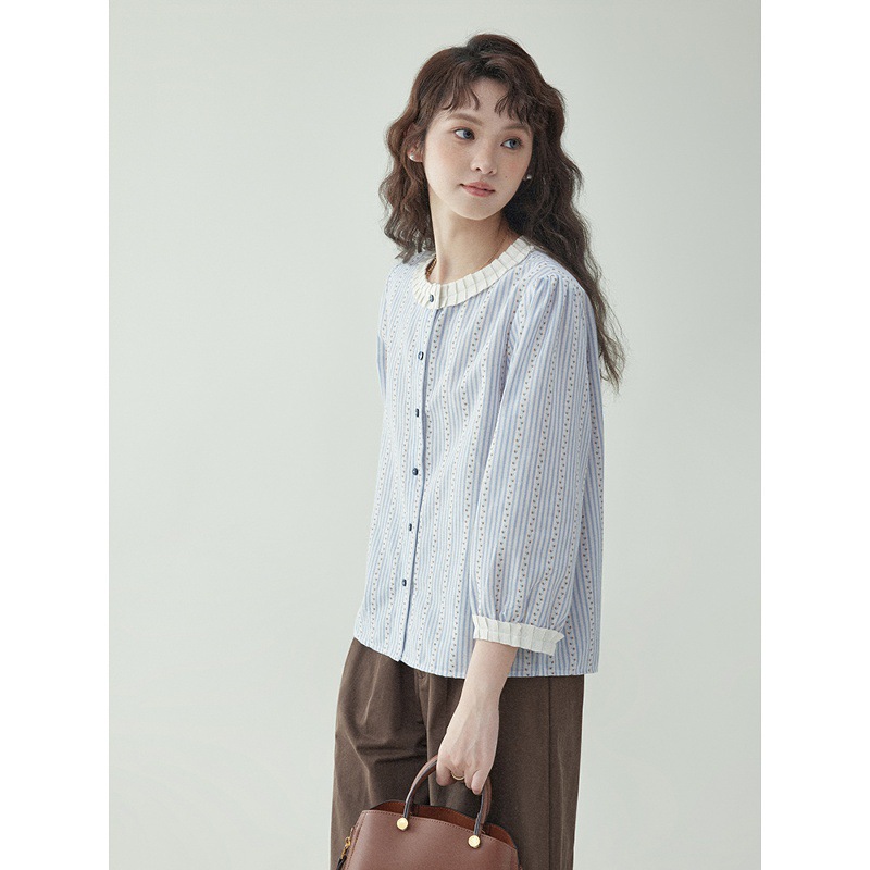 「北岛AMUU原创」日系拼色花边单排扣衬衫女春季新款显瘦长袖上衣