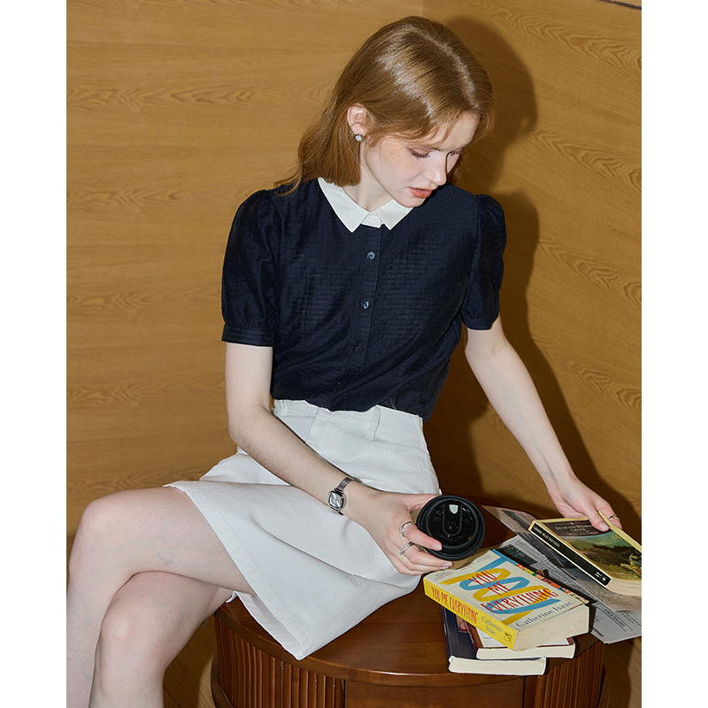 【莱赛尔】都市摩登短袖衬衫女2025年夏新款拼色翻领衬衣