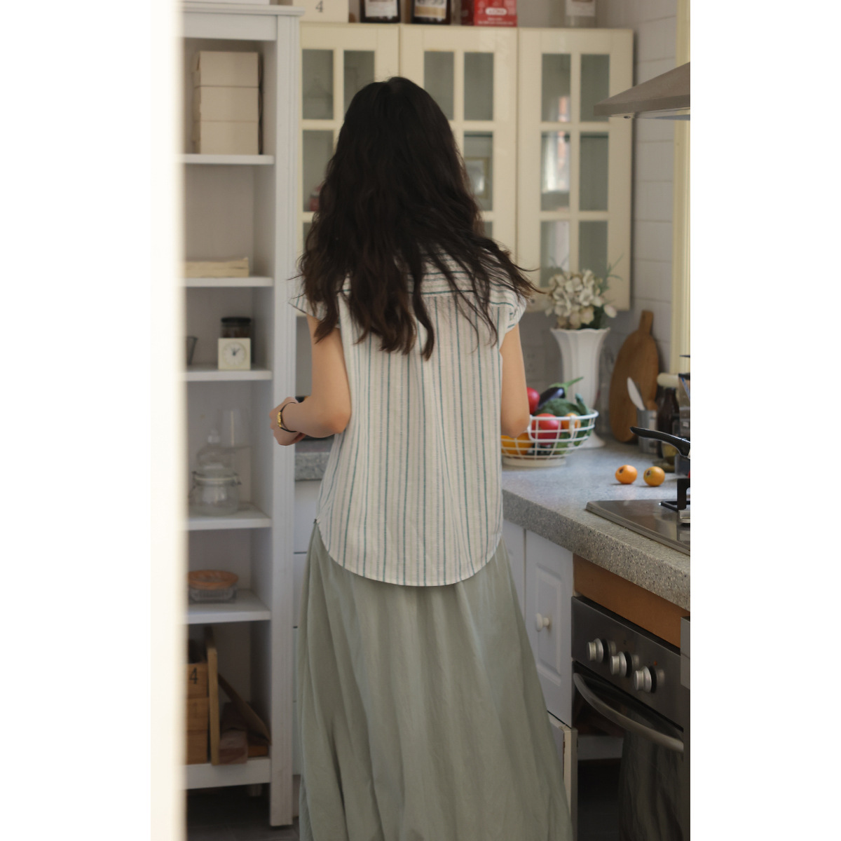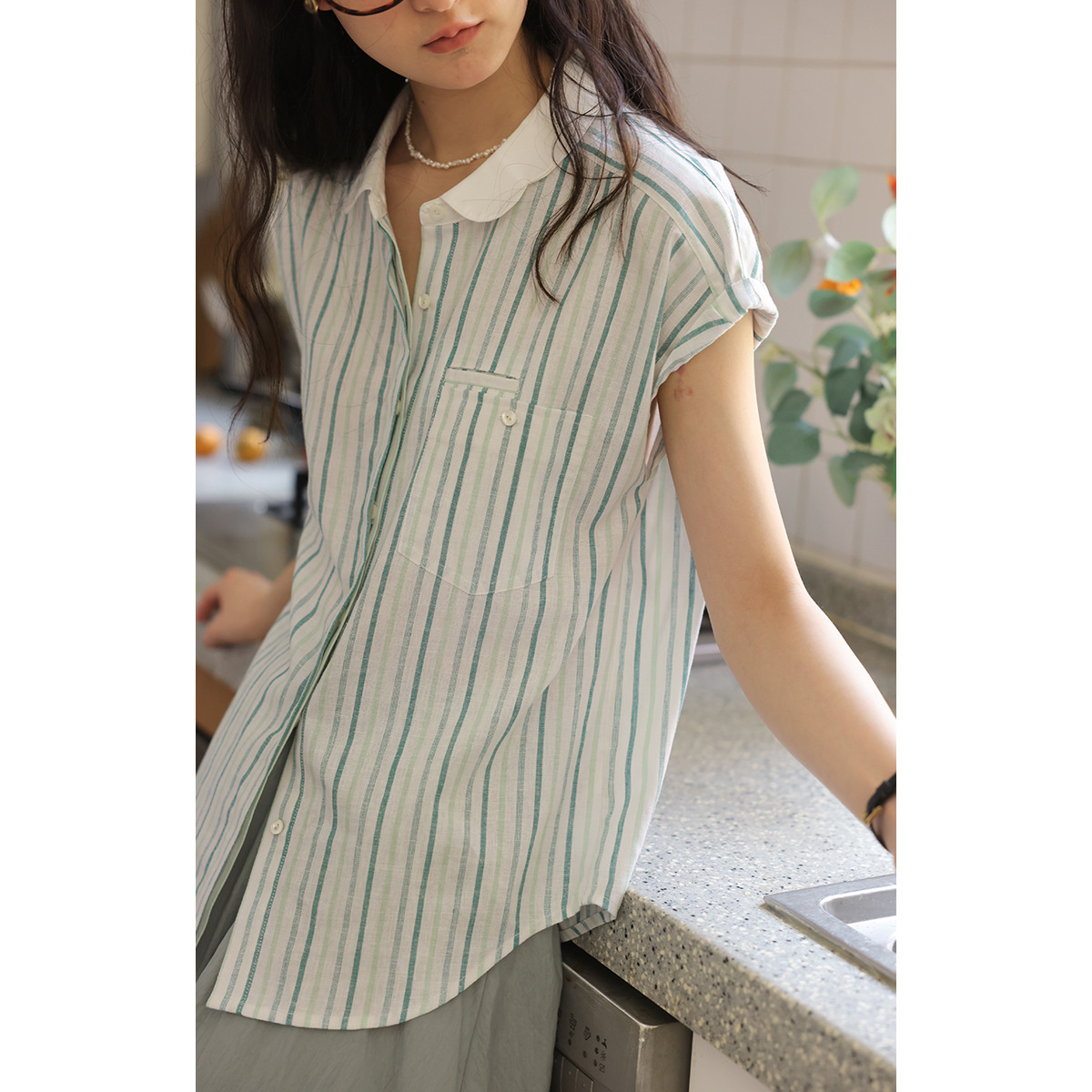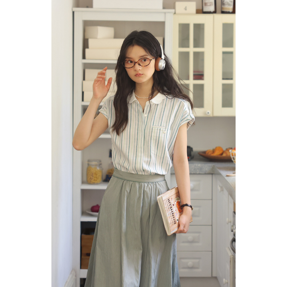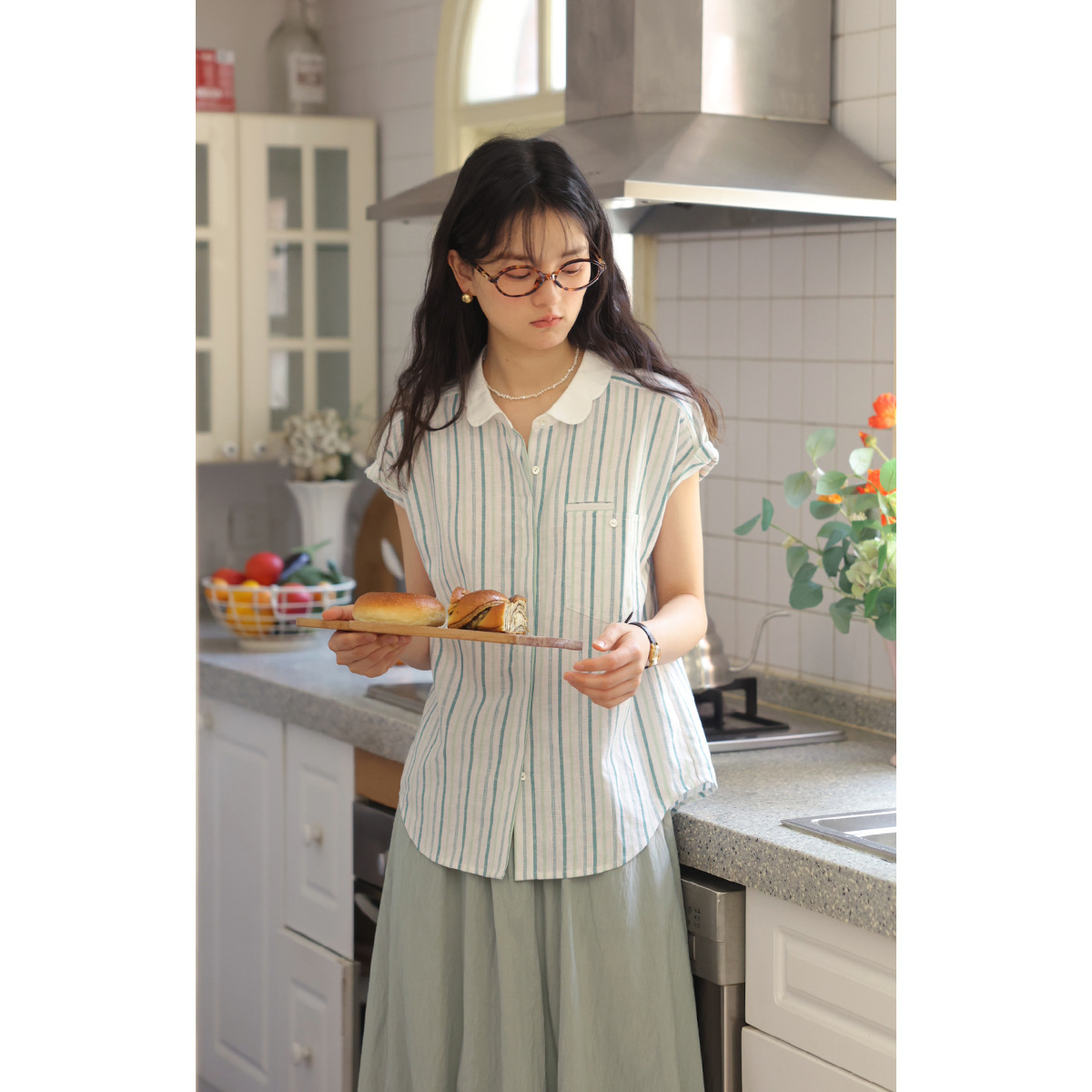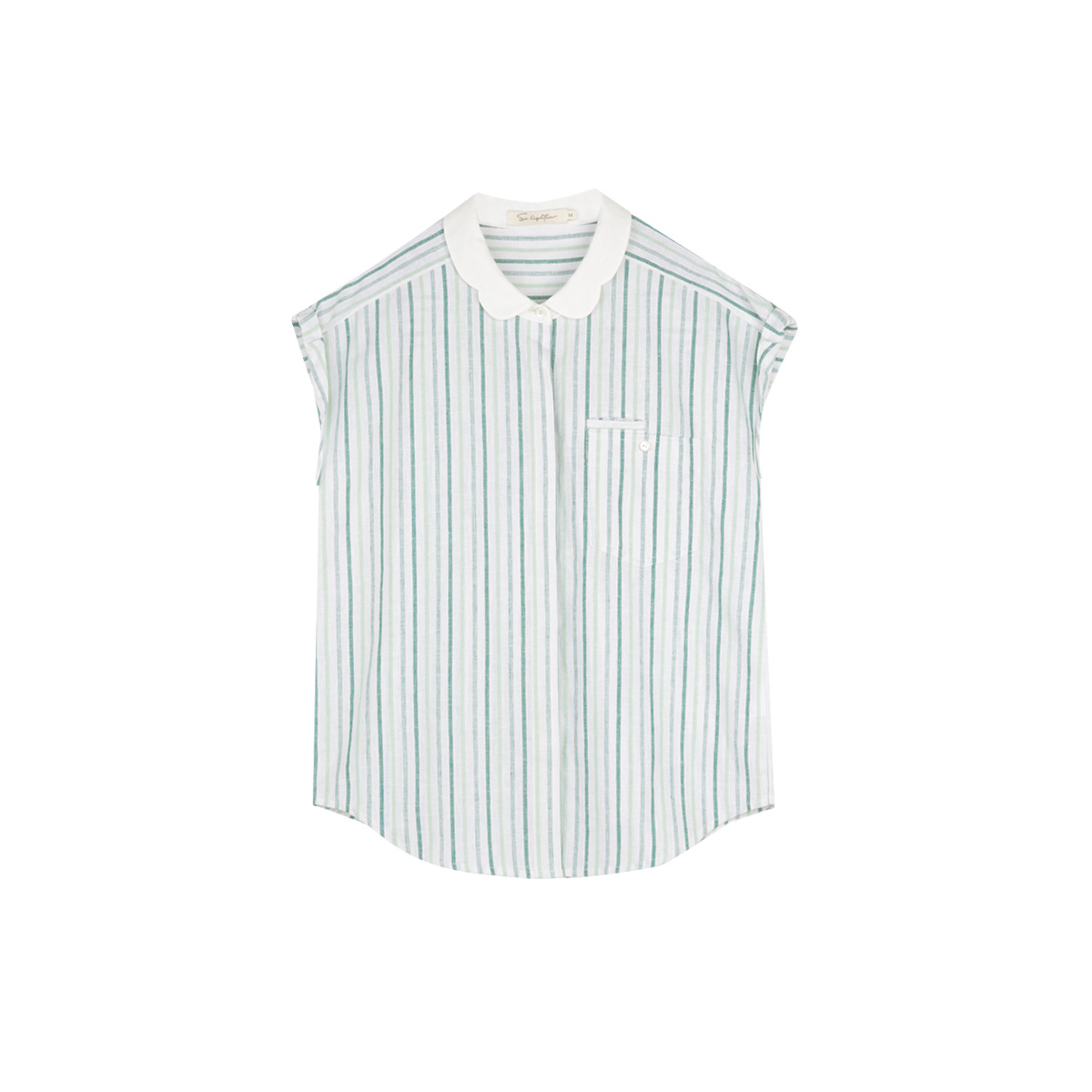 solighter 法式条纹花瓣领衬衫女夏季2025新款宽松无袖衬衣