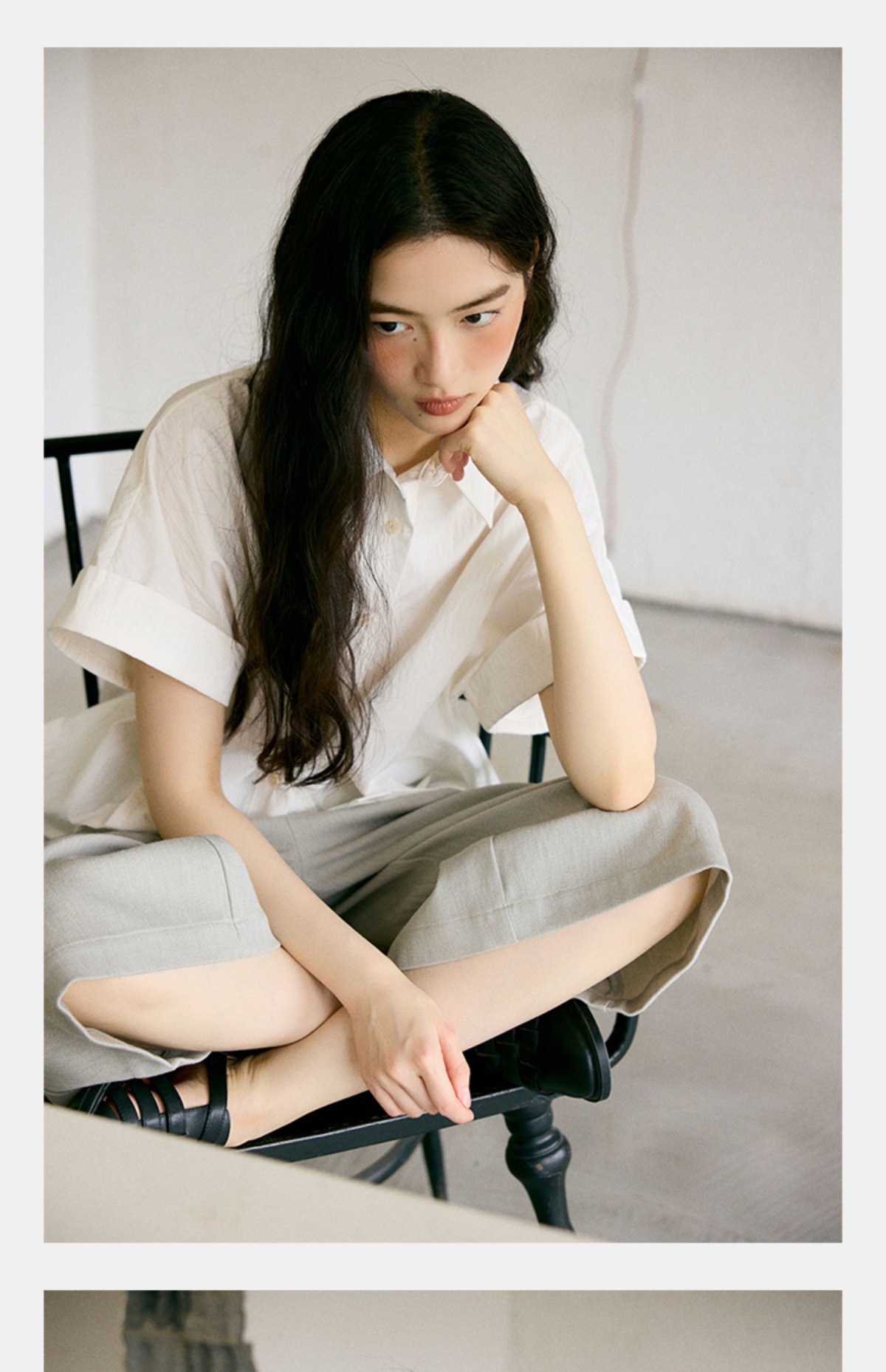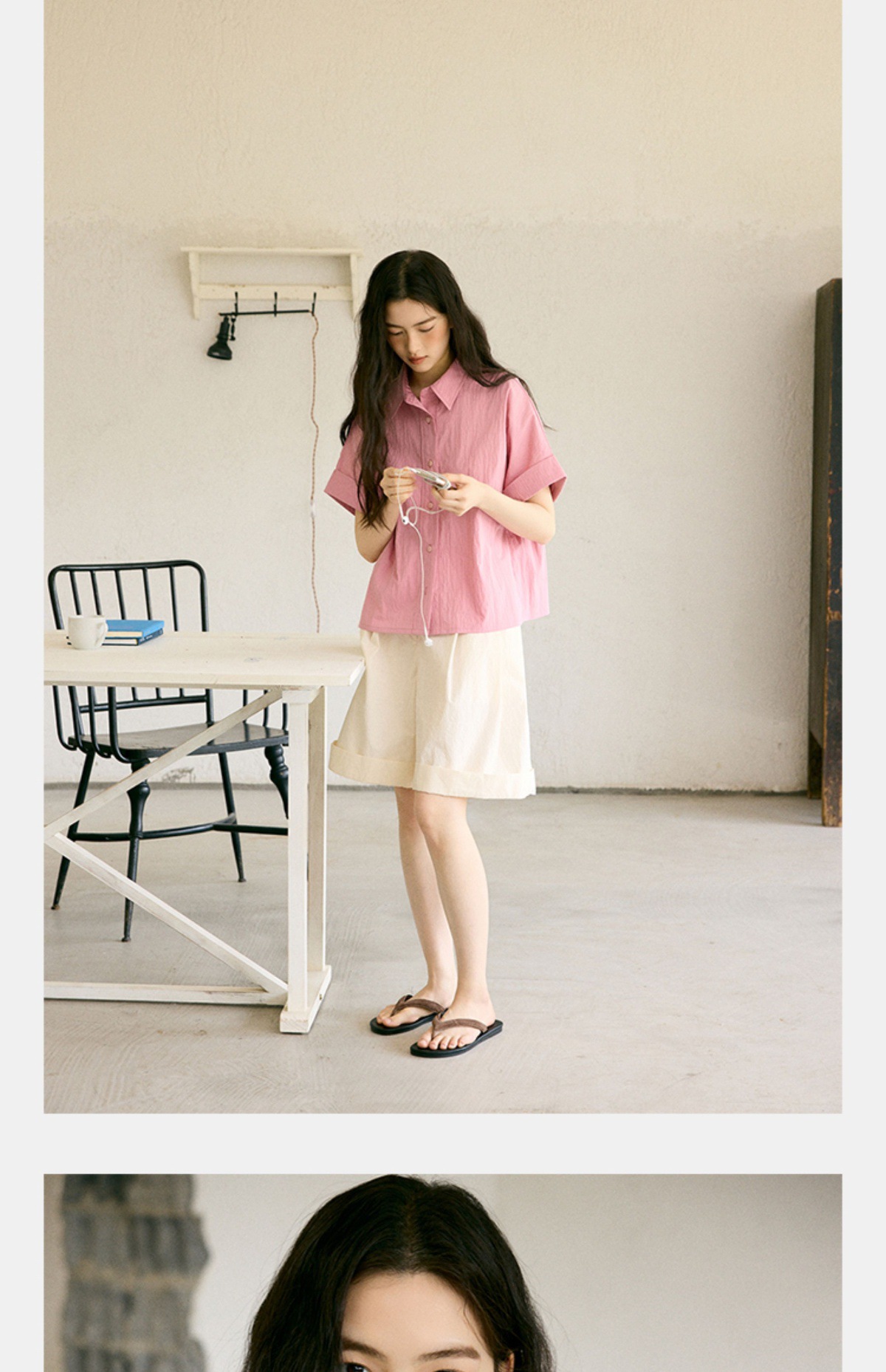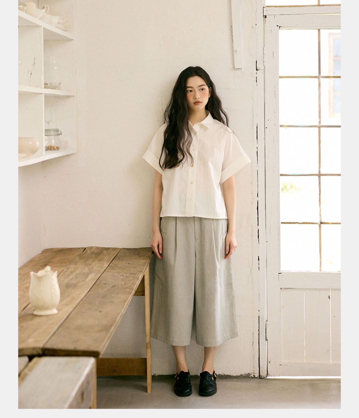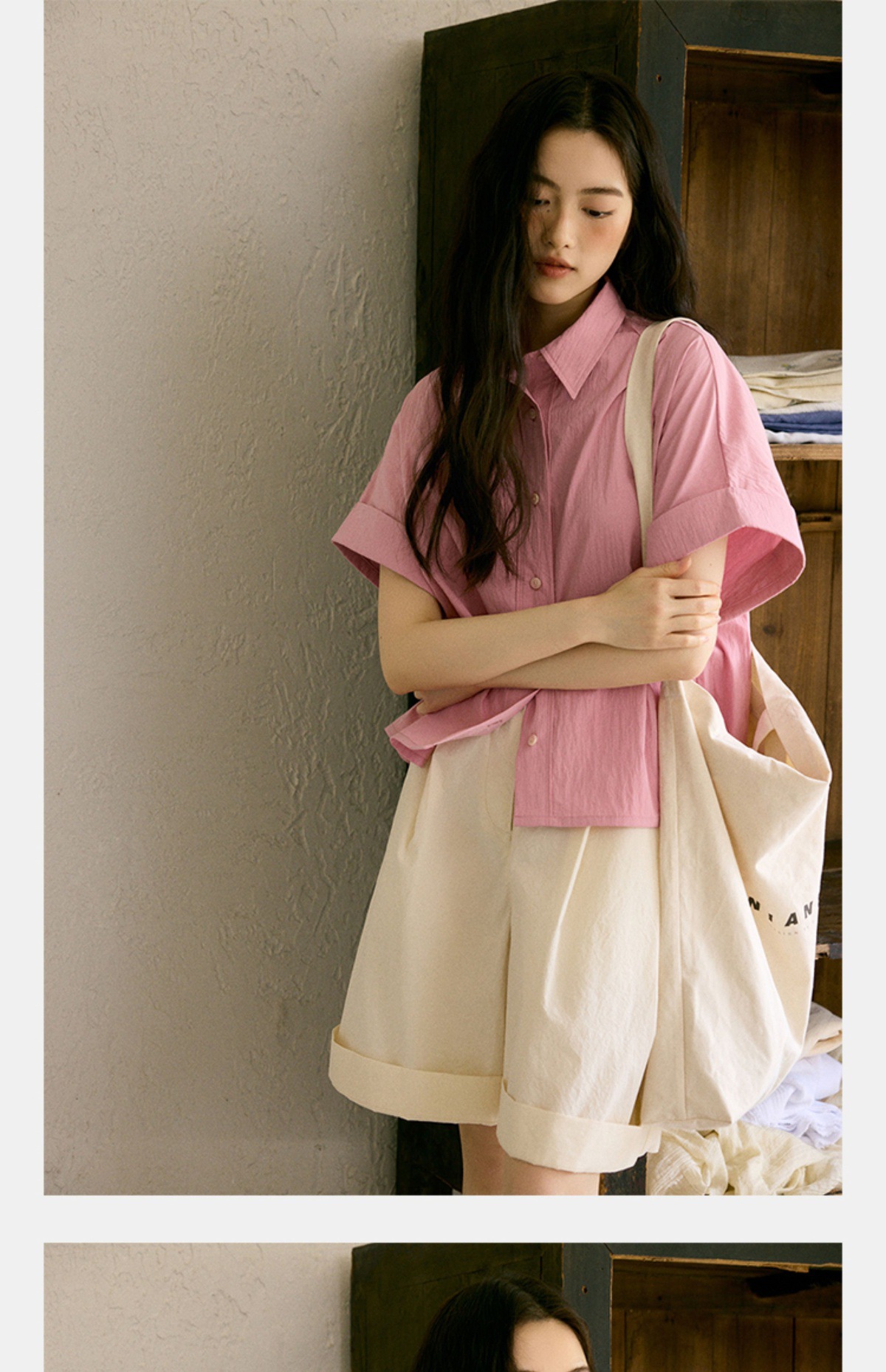 绉感肌理经典宽门襟短款翻边短袖衬衫NC3086
