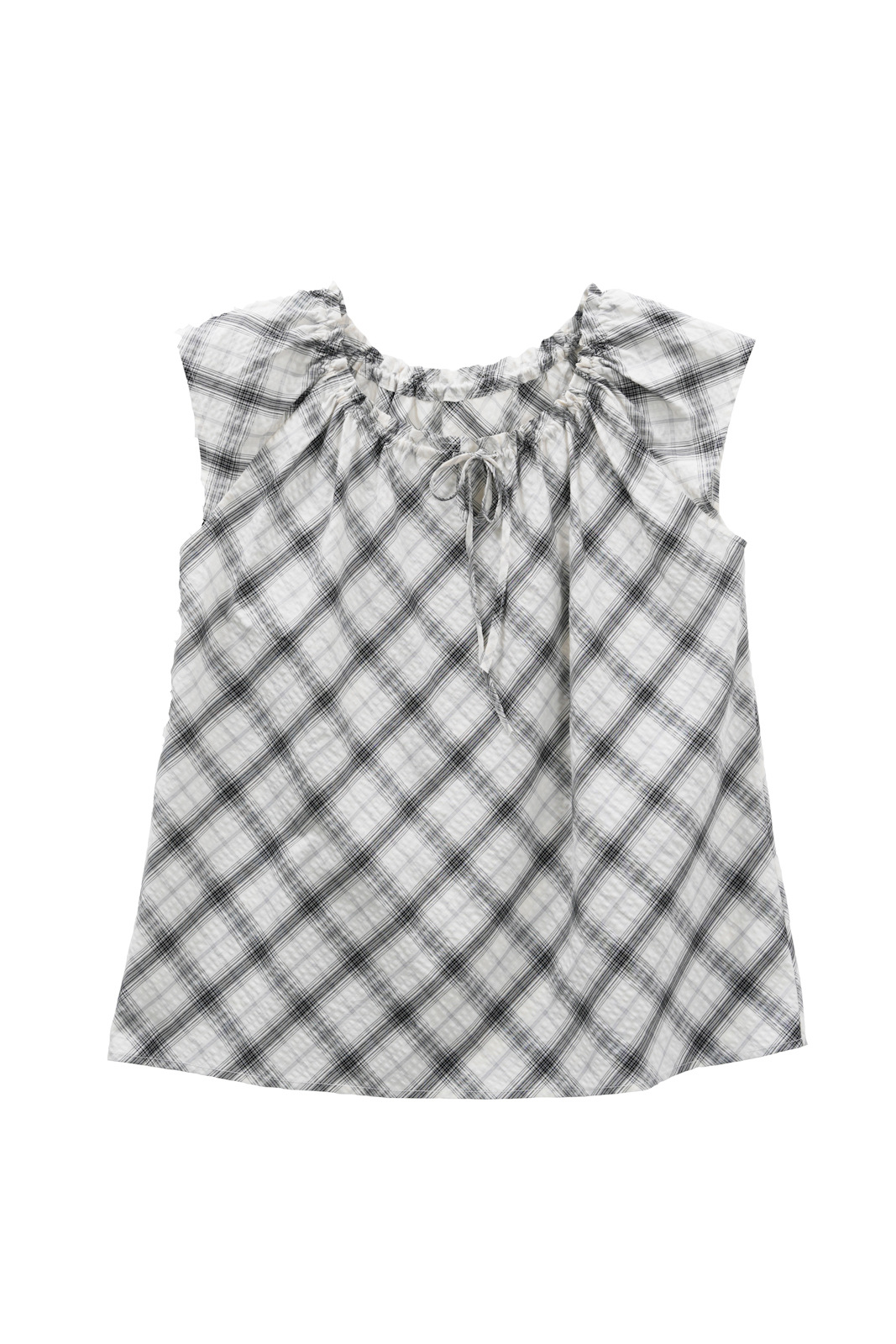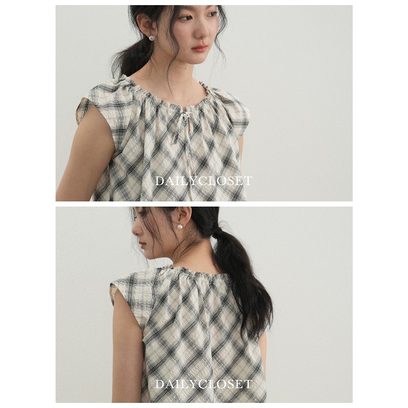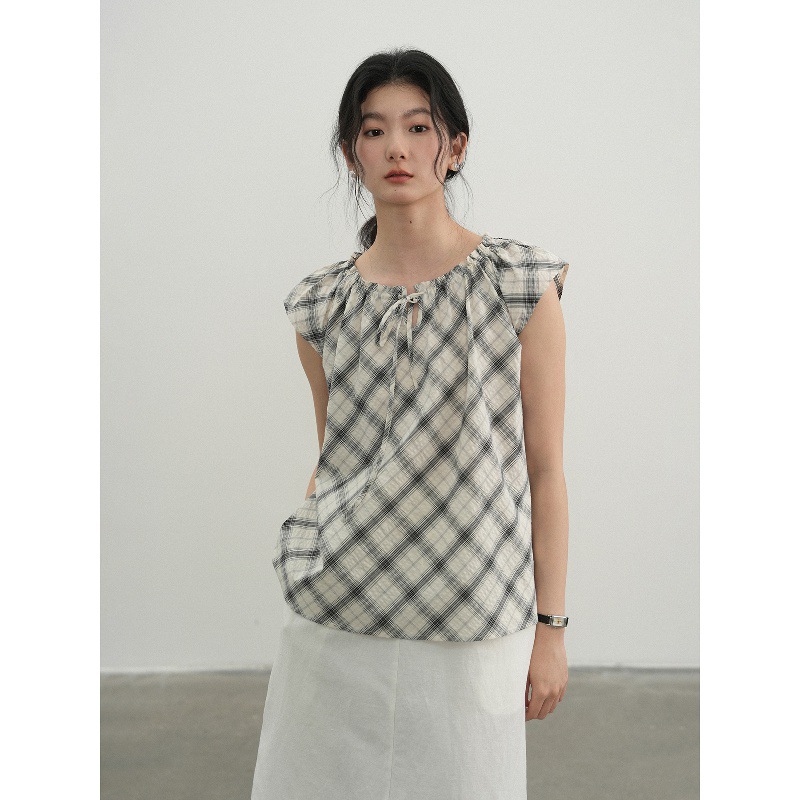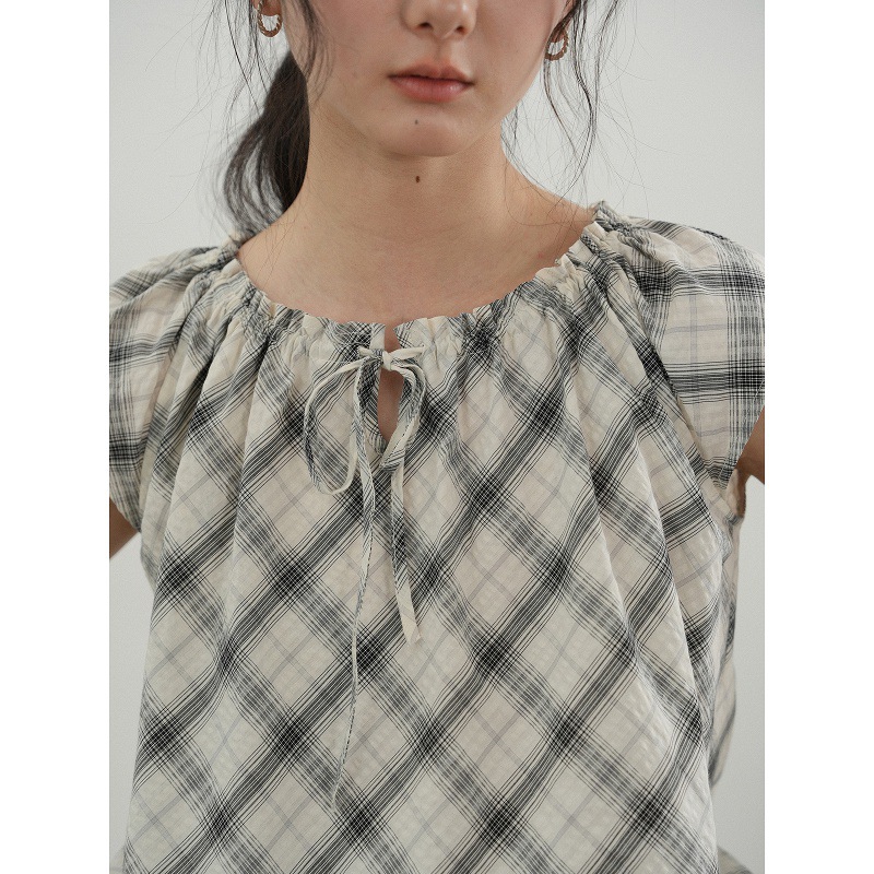 夏日光影 法式复古黑白格子T恤减龄小衫短款小飞袖独特别致上衣女