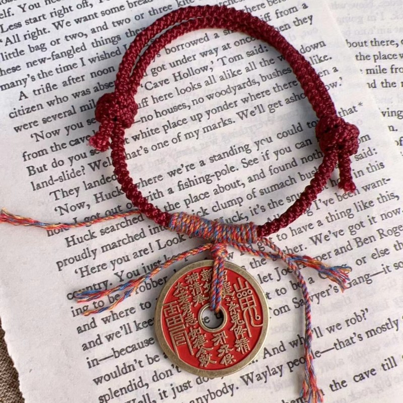 新中式藏式手绳朱砂山鬼花钱手链手工编织手绳铜钱手链红绳编织