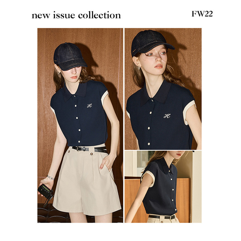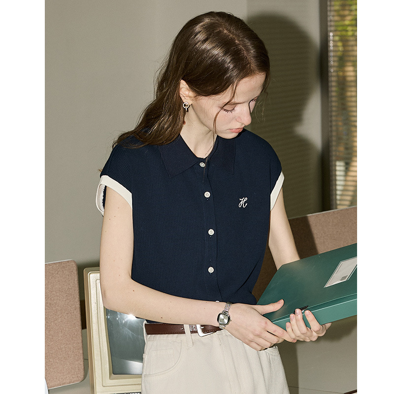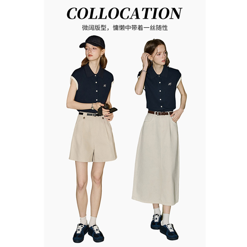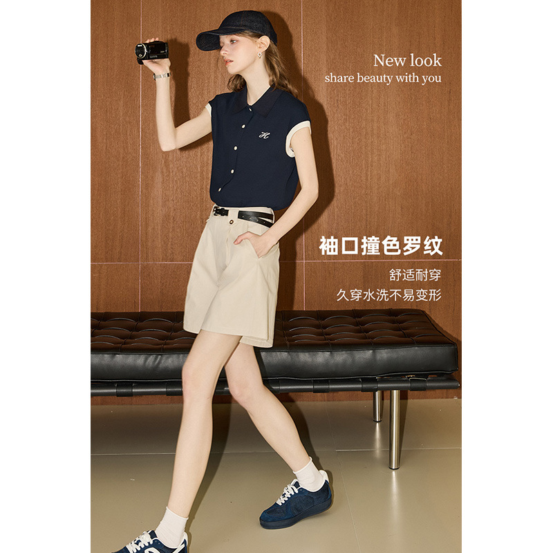 学院风翻领短袖T恤女2025夏新款设计感小众气质通勤上衣
