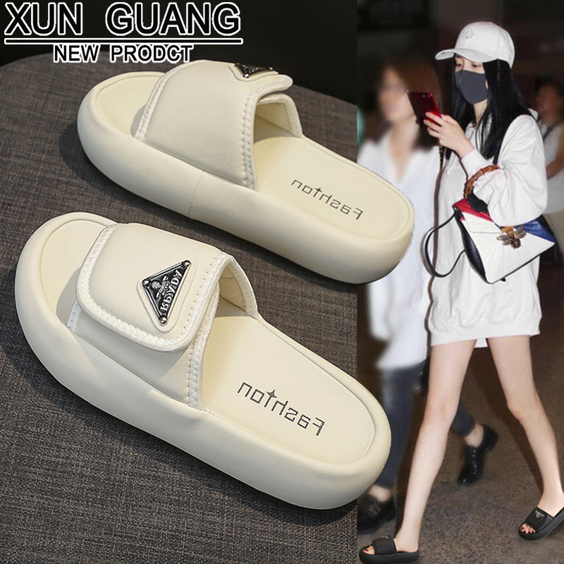 韩版厚底增高一字拖鞋女夏季外穿新款百搭魔术贴沙滩凉拖鞋