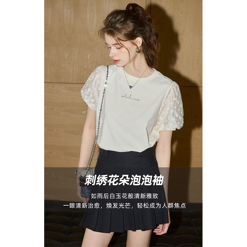 小众甜美气质泡泡袖T恤女2025夏季新款别致漂亮短袖小衫