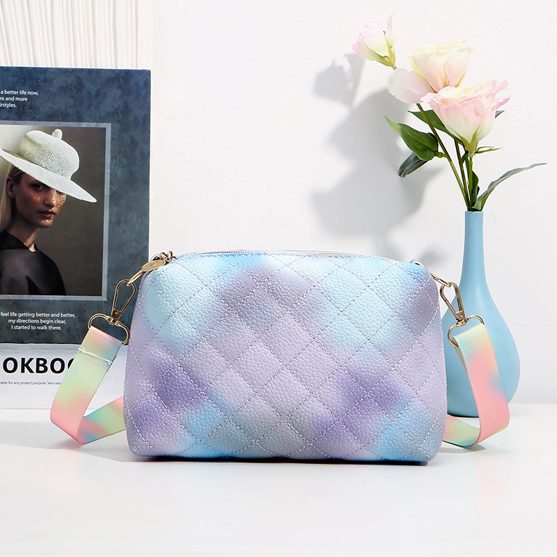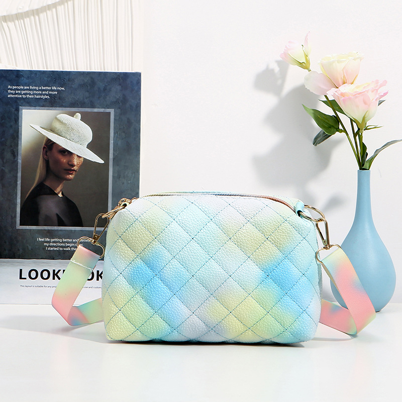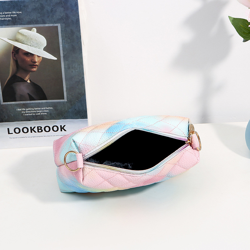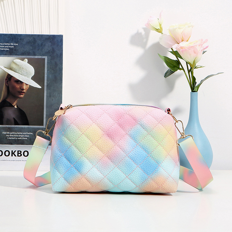 潮流时尚彩虹色单肩斜挎女包包款百搭休闲手机化妆包现货批发